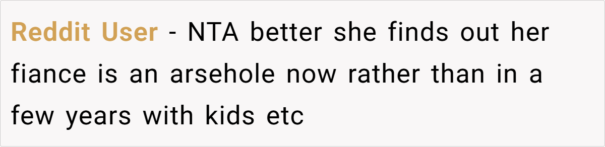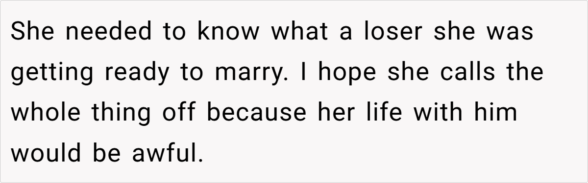 Sometimes, revealing the truth isn’t about “ruining” a relationship—it’s about saving someone from a future they didn’t sign up for. Would you have told the fiancée the truth, or do you think OP overstepped?