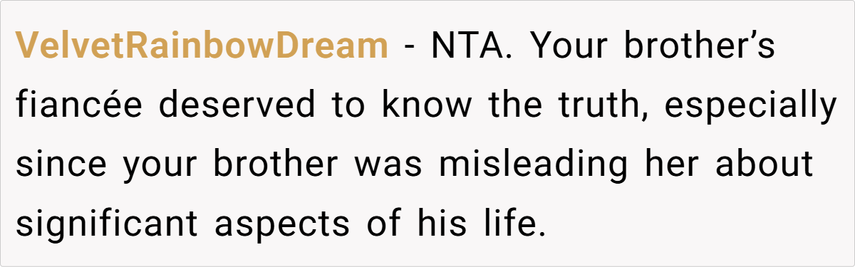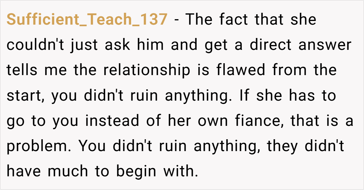 - Honesty is Essential – Difficult conversations are better than hidden truths. While OP’s revelation hurt in the short term, it likely saved his brother’s fiancée from greater heartache in the future.