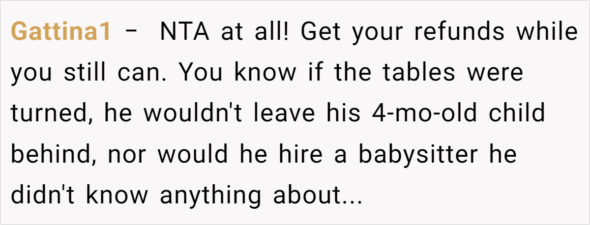 According to Dr. Laura Markham, a clinical psychologist and parenting expert, “Parents know best when it comes to their infant’s needs, and compromising on a baby’s comfort for the sake of social obligations is never worth the stress.” Her insight reinforces that parental instincts are vital and should guide decisions rather than rigid social rules. In this case, the mother’s decision to cancel is rooted in a sincere concern for her baby’s safety and well-being, rather than any desire to shirk family responsibilities.