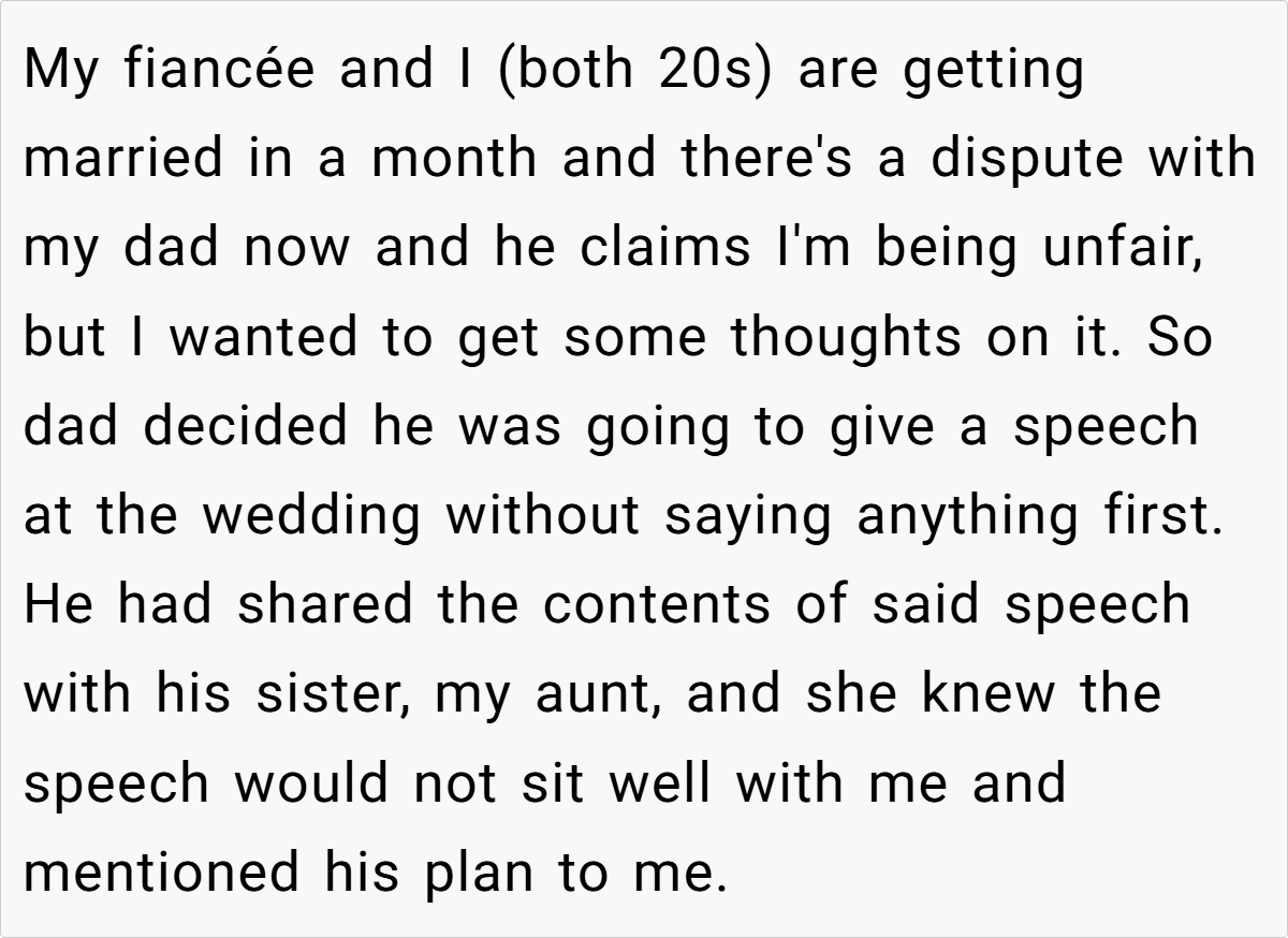 ‘AITA for telling my dad he’s not allowed to give his speech at my wedding?’