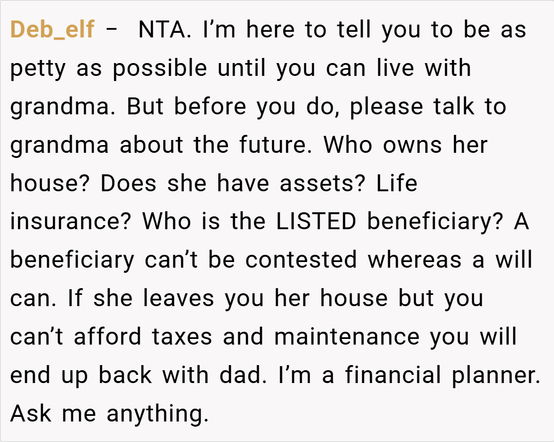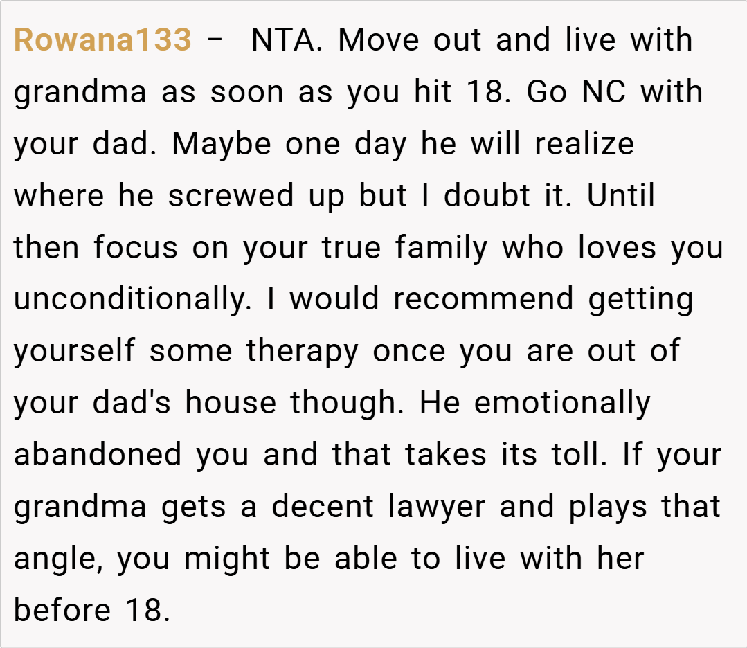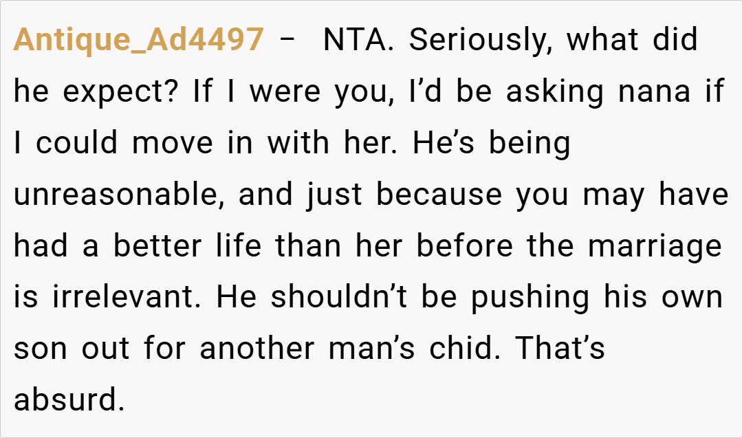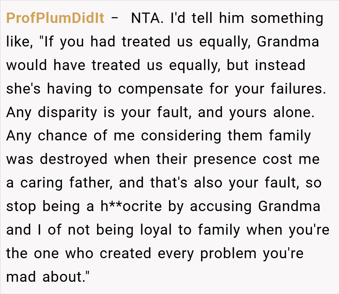 Many redditors sympathize with the OP, asserting that her feelings are completely valid. A common sentiment is that no one should be forced to “share” a parent if it means feeling perpetually sidelined. Several commenters applauded her for standing up against what they see as blatant favoritism, while others pointed out that blended families are messy, but that doesn’t excuse unequal treatment.