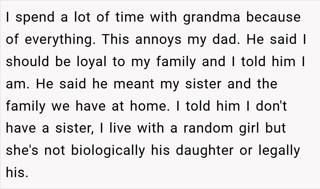 ‘ AITA for telling my dad I’m not cutting off my grandma for not treating my stepsister the same as me?’
