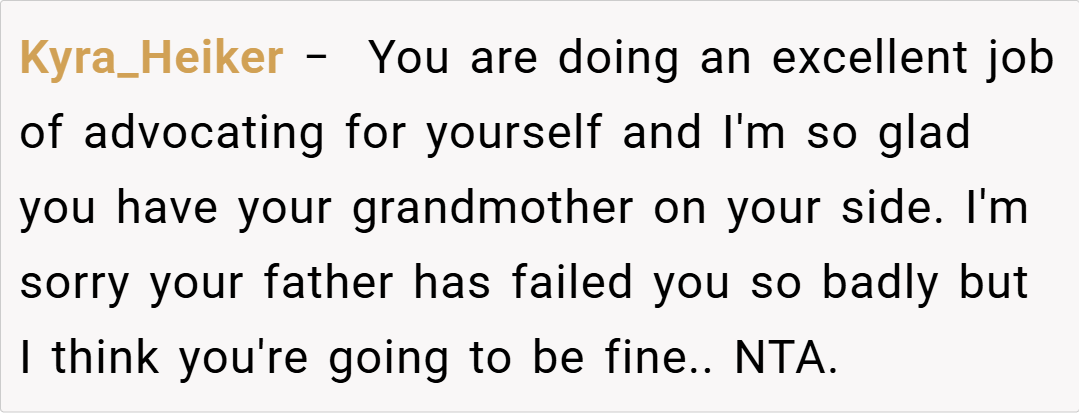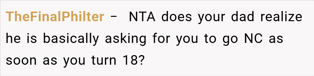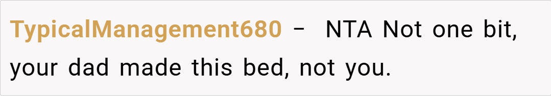 In the midst of heated arguments and harsh words, the OP’s emotional journey is one of self-assertion and a longing for fairness. Her poignant declaration—that she won’t let her dad’s choices dictate her relationships—sets the stage for a complex exploration of loyalty, family bonds, and the price of favoritism. As she navigates these troubled waters, her words resonate with anyone who’s ever felt overlooked in their own family.