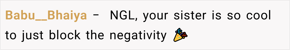 • Sibling Solidarity: “Your sister blocking her is a power move. Protect your peace”.