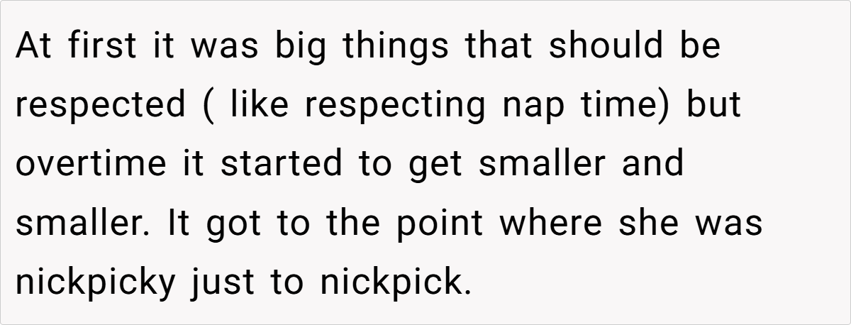 The frustration stems from a litany of “small” complaints: from concerns over safety in an aunt’s basement to heated disputes about the temperature of baby food. Over time, these nitpicky details have escalated into a full-blown rift that has left relationships fractured and support dwindling.