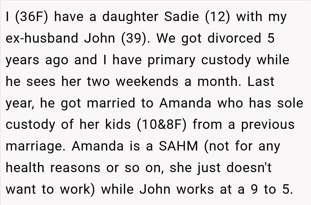 Sadie’s my priority, and I’ve busted my tail to give her stability John can’t match. His choice to let Amanda stay home isn’t my burden—labor stats show her field’s booming (BLS.gov). My clapback was blunt, sure, but Dr. McCart advises, “Clear boundaries protect kids from chaos.”