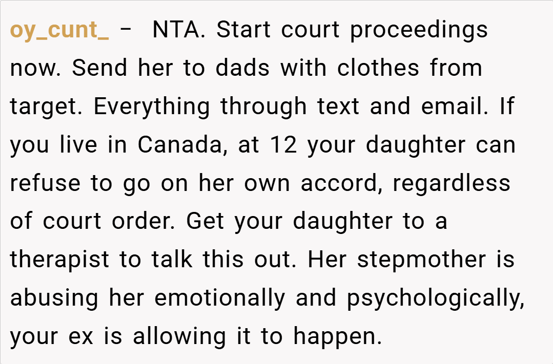 This isn’t just about clothes or school—it’s a power play steeped in envy. John and Amanda’s move reeks of resentment, not fairness. Dr. Amy McCart, a family psychologist, notes, “Stepparents overstepping into primary custody decisions often signal insecurity or entitlement” (Psychology Today).