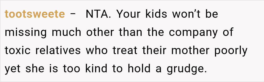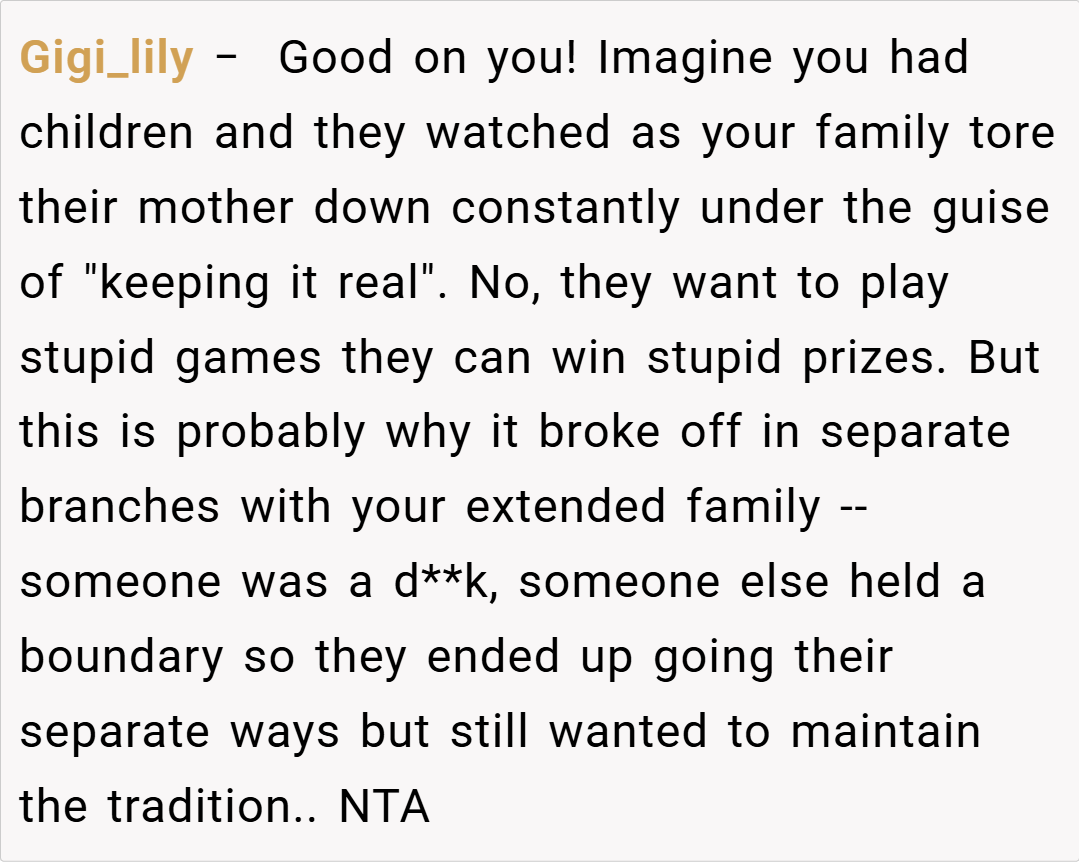 In this case, the longstanding negativity directed at OP’s wife has created a situation where continuing the tradition feels more like a punishment than a celebration. Do you believe that family traditions should be abandoned when they become toxic, or is there a way to salvage them while protecting personal boundaries? Share your thoughts and experiences in the comments below—what would you do in a similar situation?