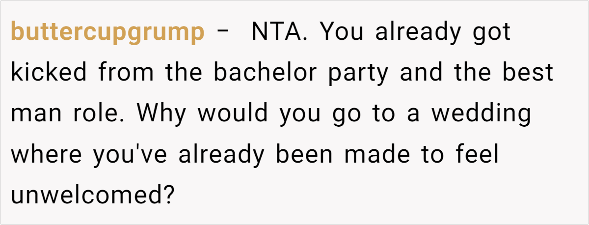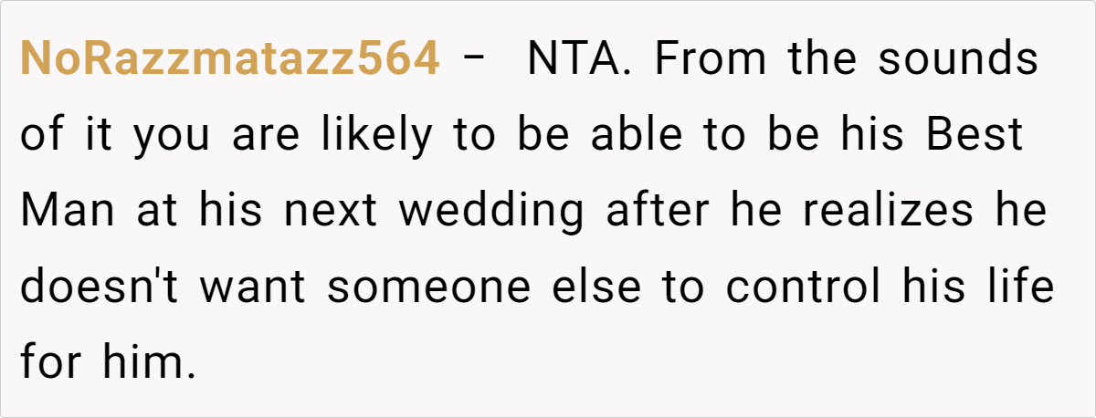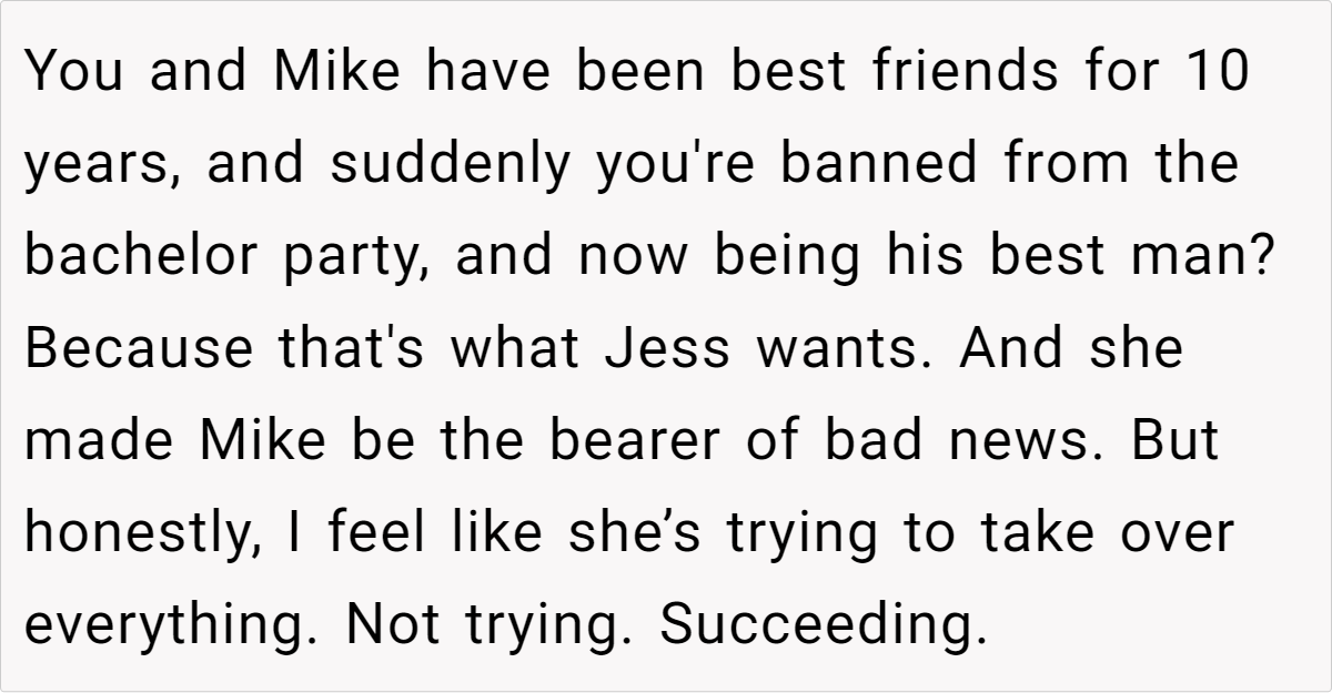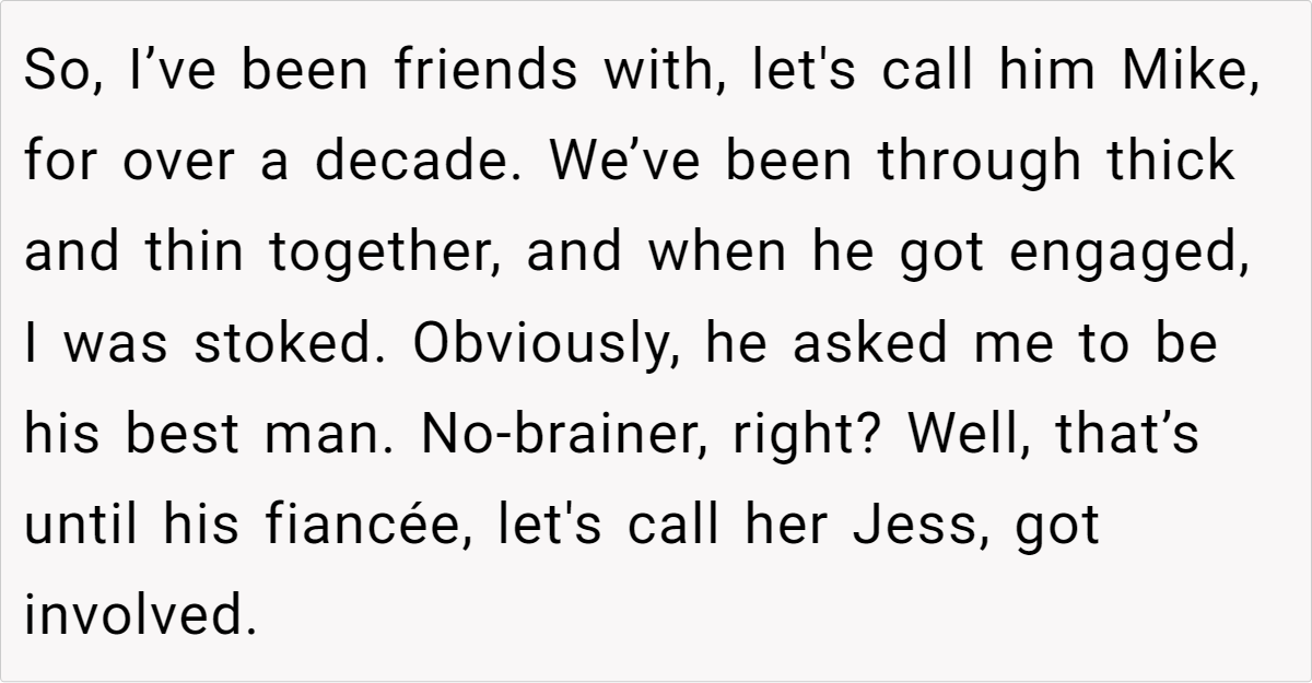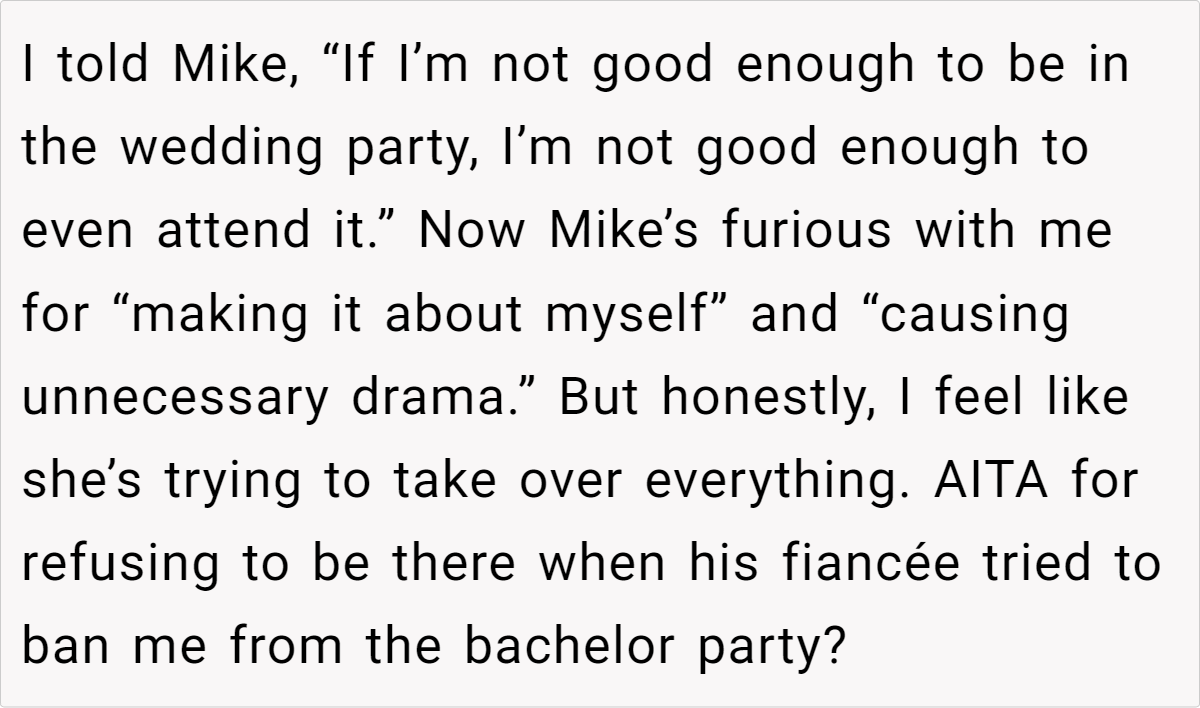 ‘ AITA for Telling My Friend I Can’t Be His Best Man Because His Fiancée Tried to Ban Me from His Bachelor Party?’
