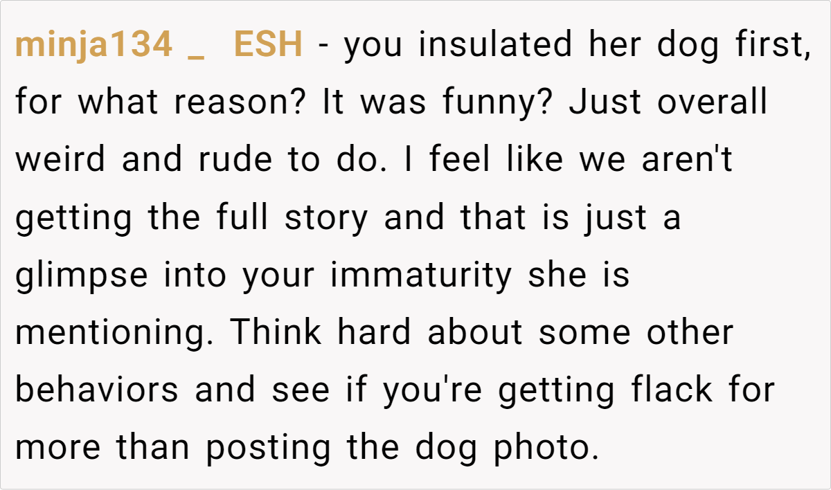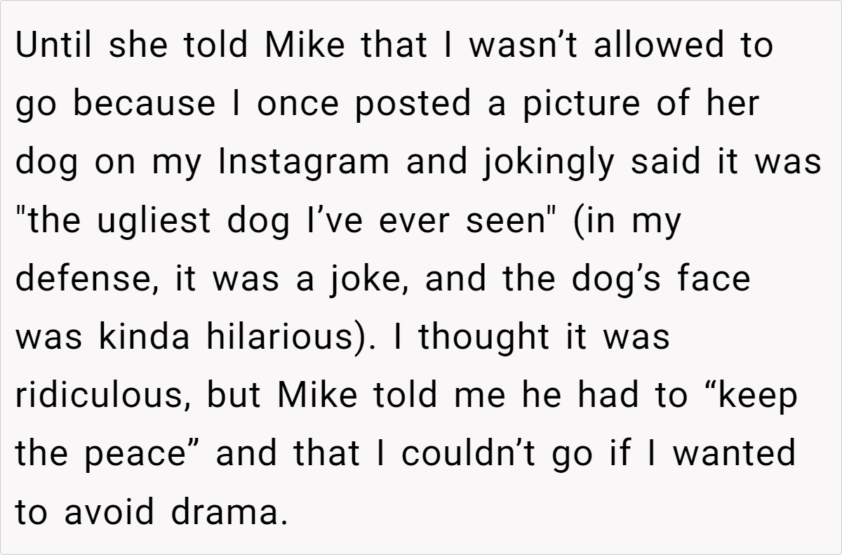 Furthermore, the fiancée’s overreaction to a harmless joke about her dog suggests a potential insecurity or need for control that could create challenges in the future. Dr. Harriet Lerner, a clinical psychologist and author specializing in family dynamics, emphasizes the importance of setting boundaries and communicating assertively when dealing with controlling or manipulative behavior.