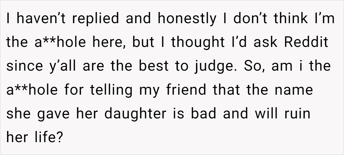 ‘AITA for telling my friend she is ruining her child’s life with the name she gave her?’