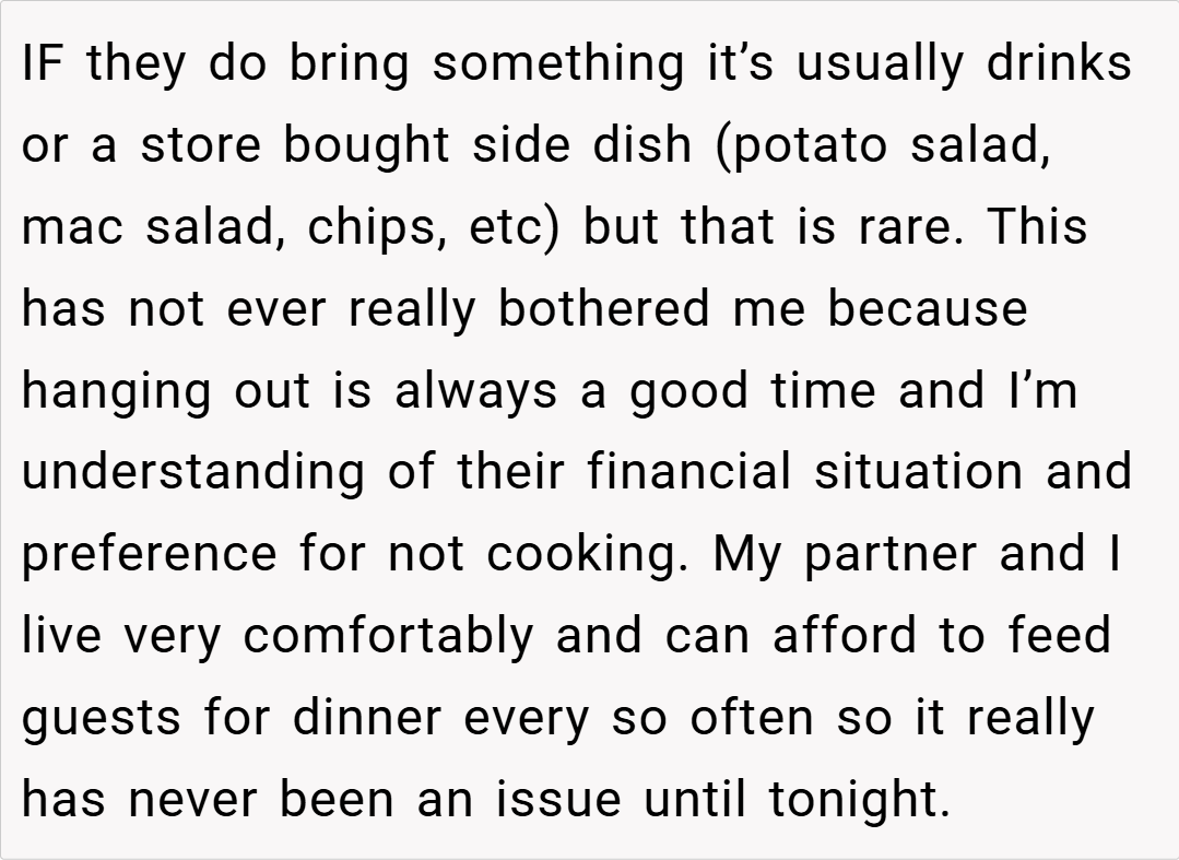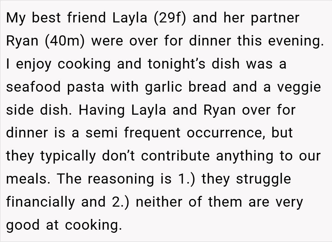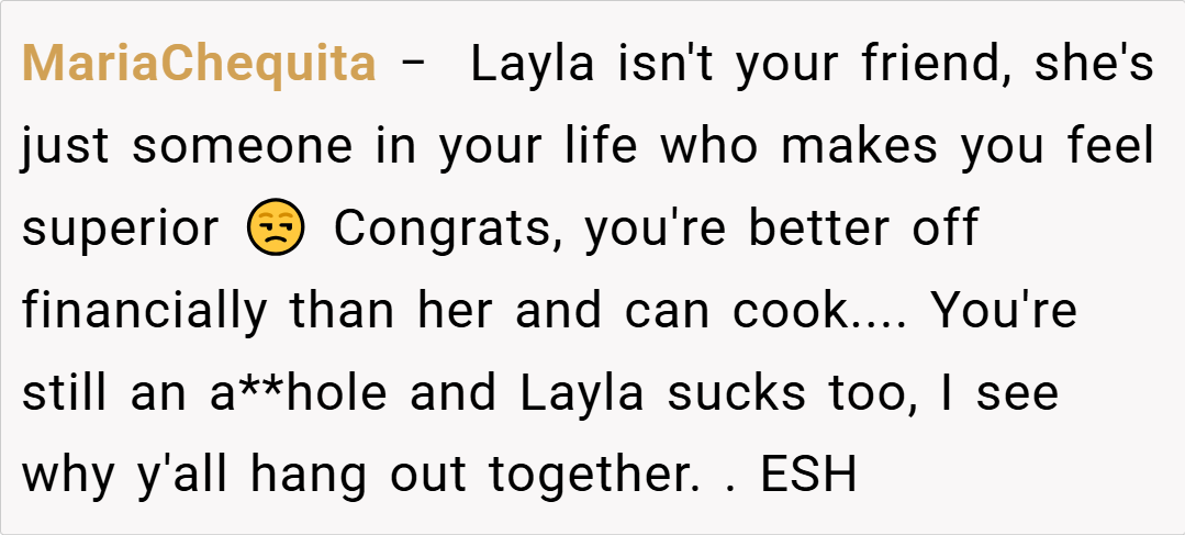 ‘AITA for telling my friend that she doesn’t get to have an opinion about my cooking because she is poor?’