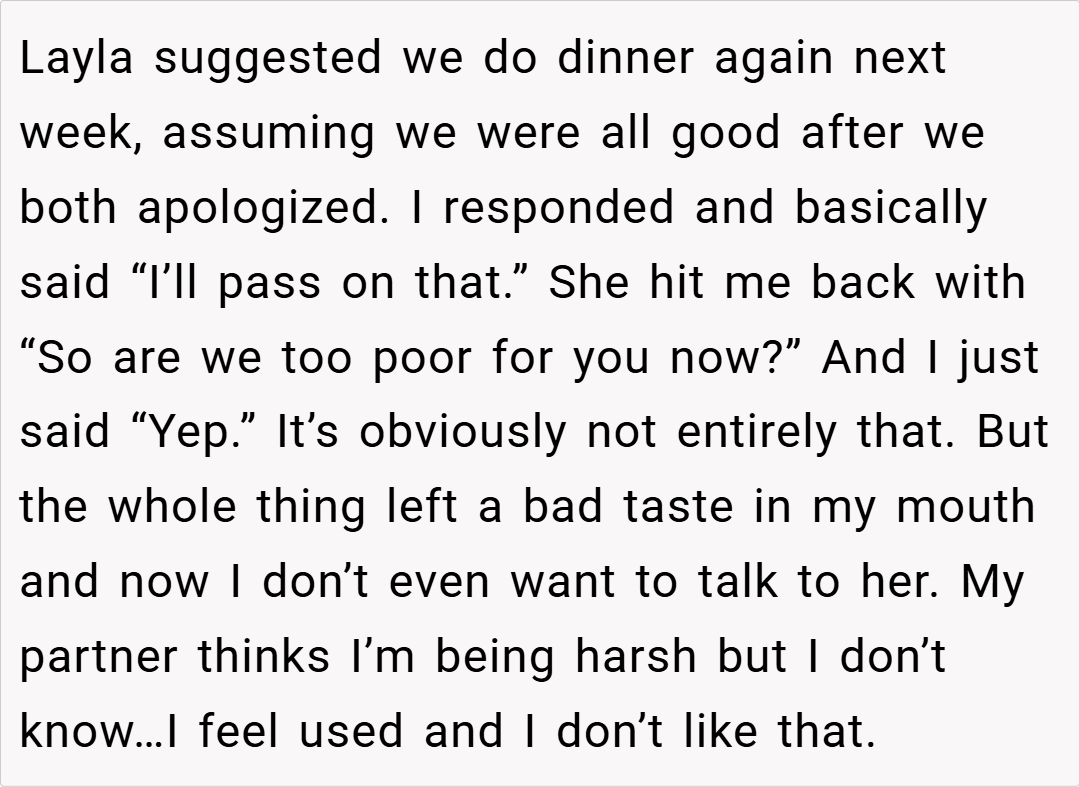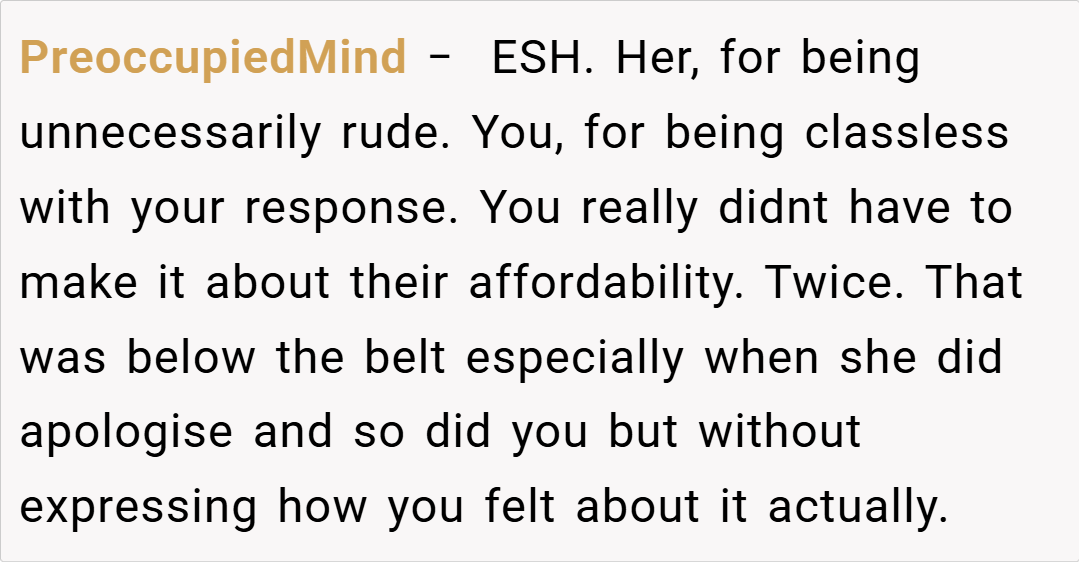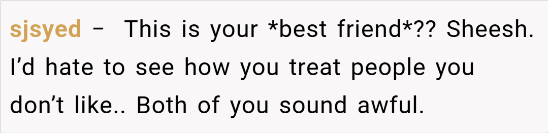 Furthermore, experts advise that when emotions run high—especially when past resentments are involved—it’s important to step back and consider the long-term effects of hurtful language. Venting frustrations might provide momentary relief but can cause irreparable damage if left unchecked. In this instance, while the friend’s remarks were admittedly insensitive, the retort targeting her financial situation crossed a line that many feel should never be drawn in close relationships.