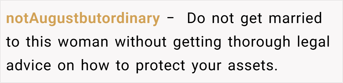 Dr. Orbuch also warns that imposing financial decisions on one’s partner can lead to a breakdown in trust. “If one partner feels that their autonomy is being undermined, it can set the stage for long-term conflict. It’s essential that both parties feel respected in their financial choices,” she concludes. Ultimately, while the OP’s stance might strain the relationship, it is a defensible position from both a legal and personal perspective.