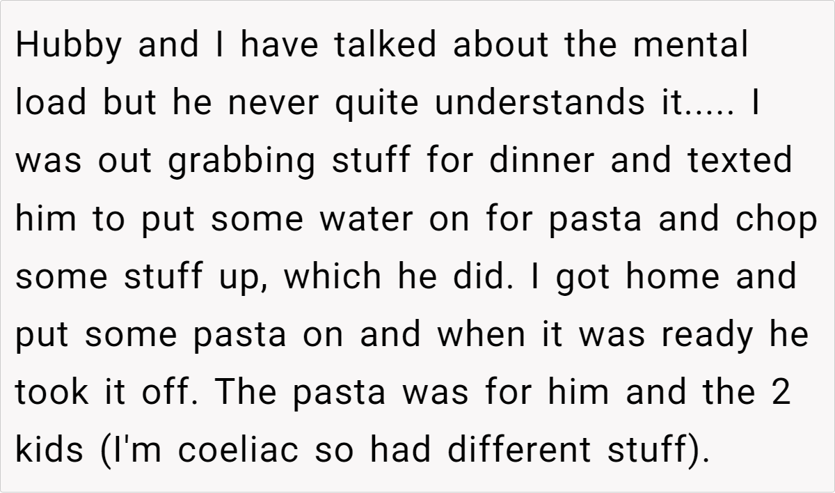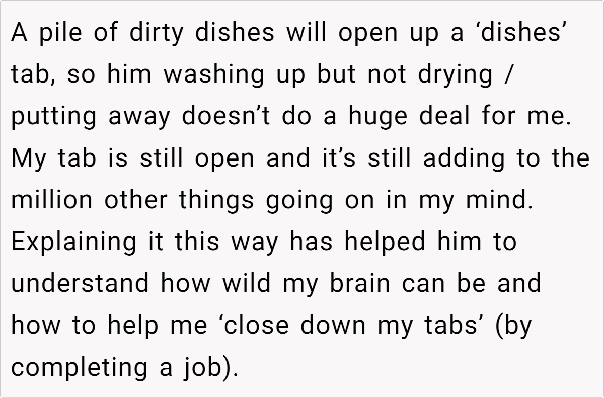 She explains how a simple query about cooling pasta for the kids highlighted a recurring issue: the need for partners to anticipate everyday tasks without additional prompts. Her experience shines a light on the challenges of managing household duties while dealing with sensory overload and mental clutter. Let’s dive into her account and explore the complexities of sharing responsibilities in a neurodiverse relationship.