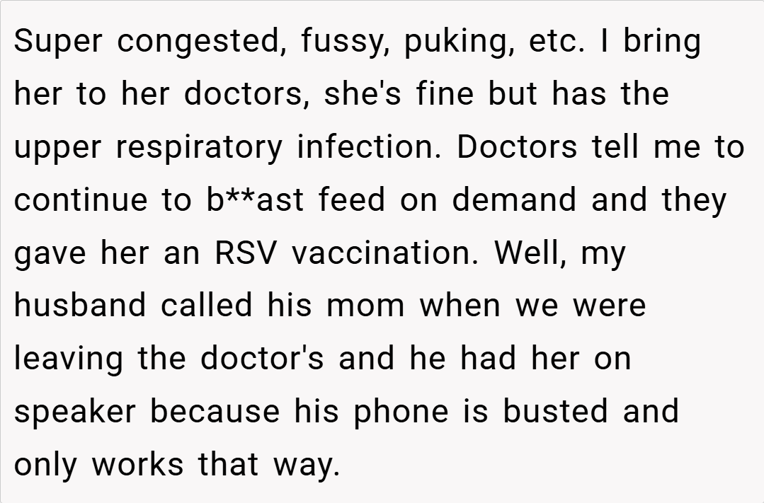 In today’s environment—where illnesses like the flu and COVID remain a significant threat—such measures are both pragmatic and necessary. While her husband’s family might see this as exclusionary, from a health and safety perspective, it’s a decision aimed solely at minimizing risks to a vulnerable newborn.