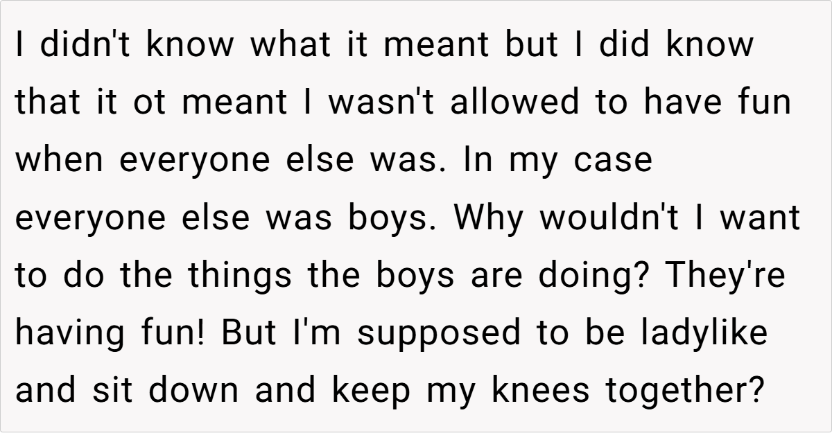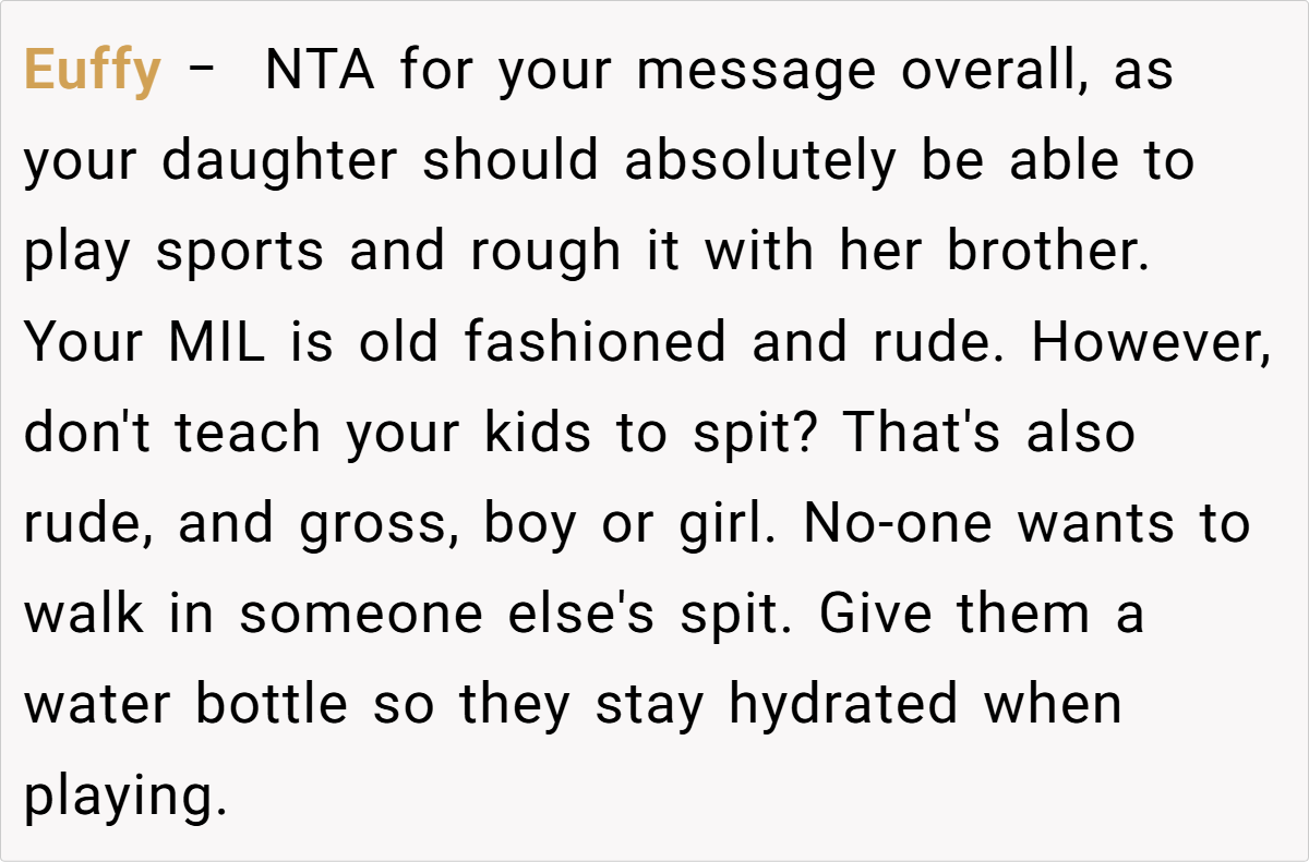 The crux of the issue lies in the expectation that girls must behave in a certain “ladylike” way, even in the carefree moments of childhood. The daughter, who loves sports and outdoor activities, was unfairly singled out by her grandmother’s comment, implying that such behavior is unacceptable simply because of her gender.