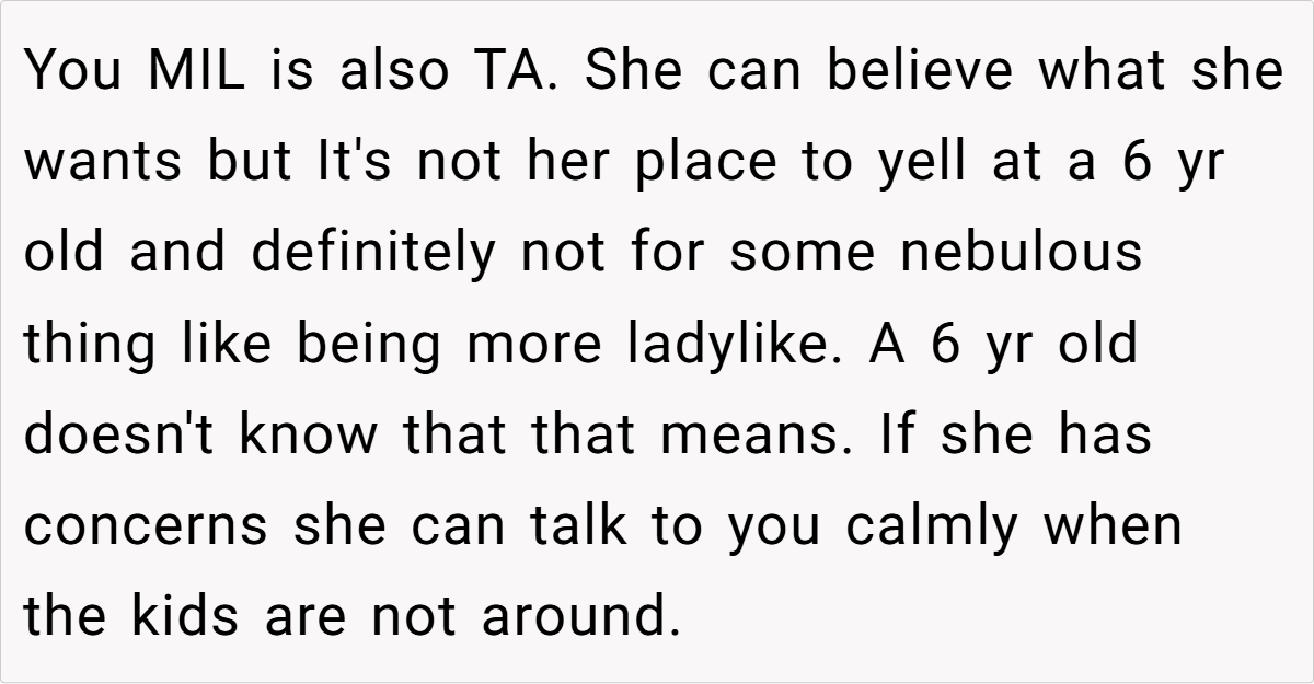 ‘AITA for telling my MIL that she needs to stop telling my 6 year old to be ‘ladylike’?’