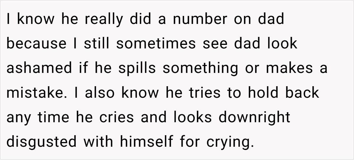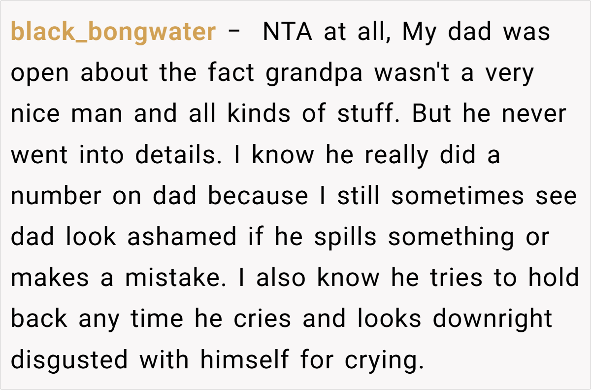 Family dynamics are often a reflection of unresolved generational pain. The OP’s narrative vividly illustrates how a legacy of emotional abuse can ripple through generations, leaving visible marks on even the simplest interactions. His father’s reluctance to reconnect with a man who once inflicted deep harm is not merely a matter of pride—it’s a protective shield formed by years of hurt. In such situations, understanding and acknowledging past trauma is the first step toward healing.