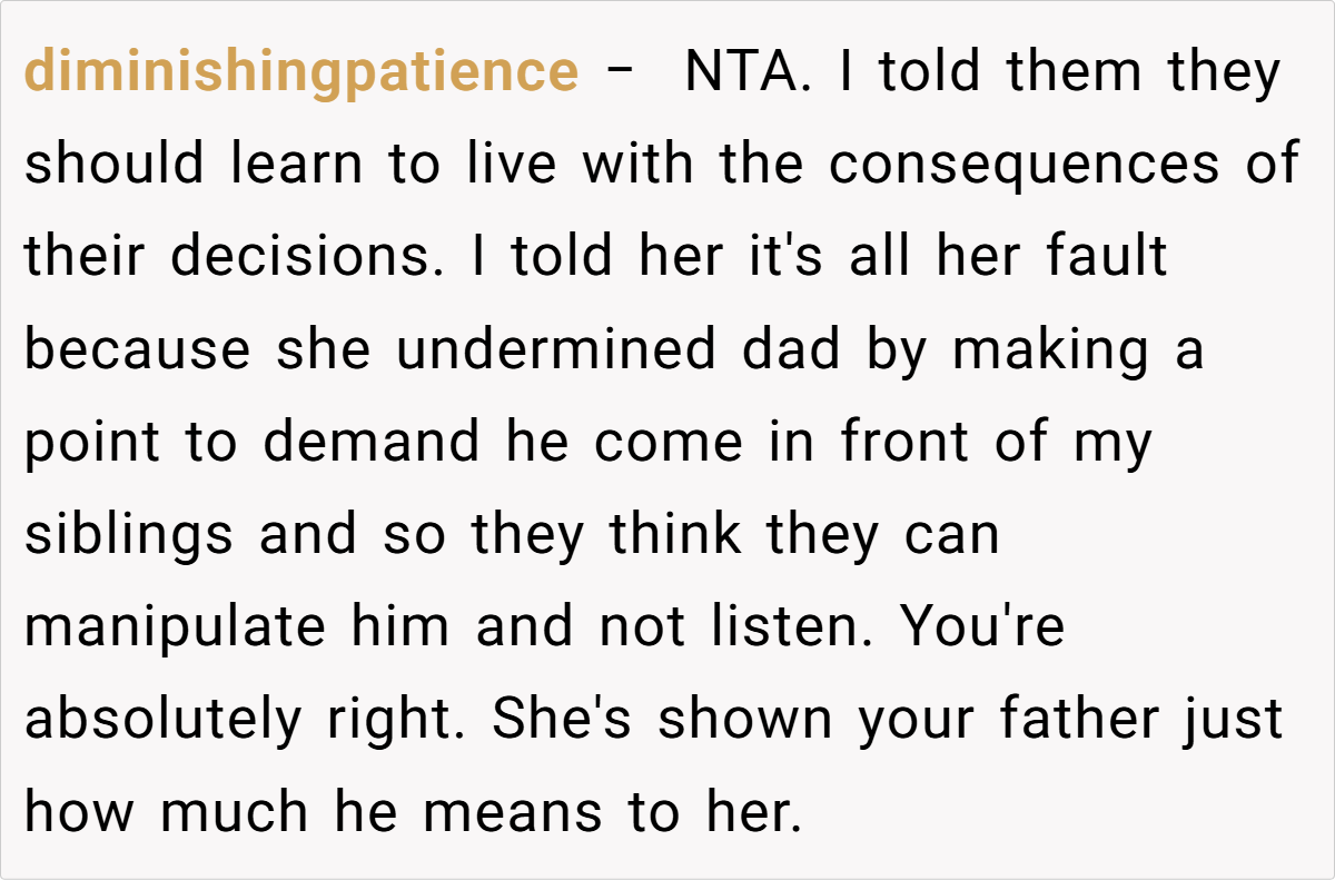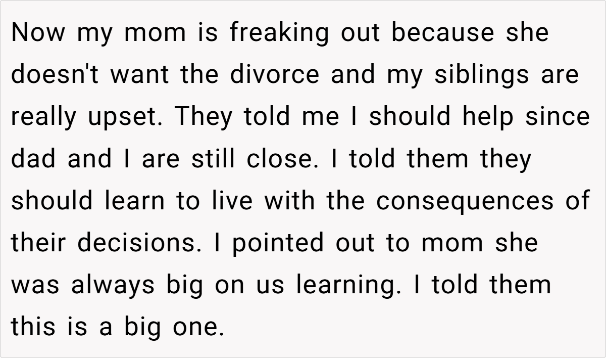 ‘AITA for telling my mom and siblings they should learn to live with the consequences of their decisions?’