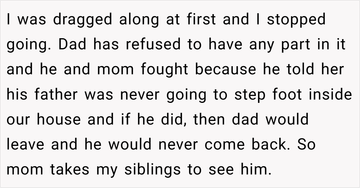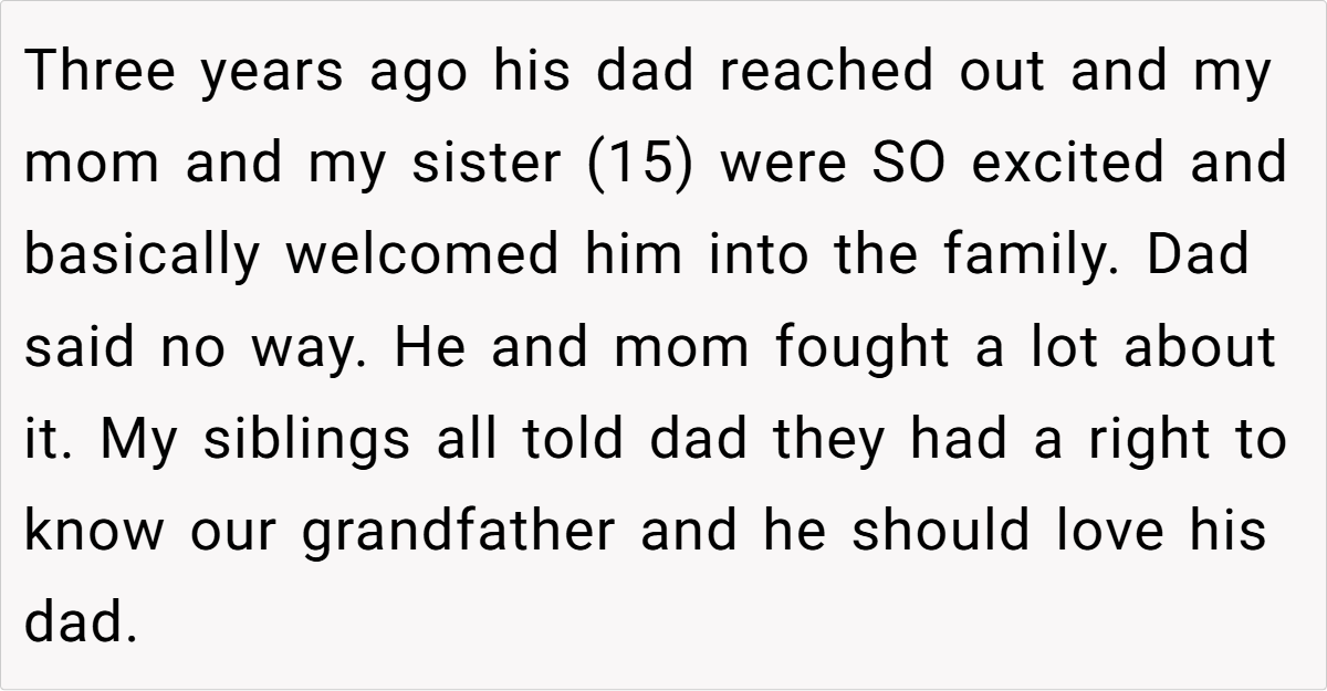 The tension escalated when, years after distancing themselves from a toxic past, a push to reconnect with a troubled grandfather ignited fierce conflict. While the mother and some siblings welcomed the possibility of mending old ties, the father—wounded by decades of neglect and abuse—drew a firm line. This story isn’t just about family reunions gone awry; it’s a poignant exploration of how deeply past hurts can fracture present relationships and challenge our very ideas of loyalty and healing.