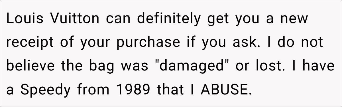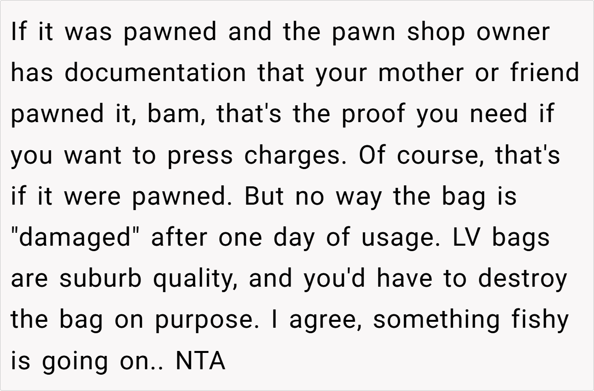 Ultimately, OP’s decision to tell her mom never to touch her stuff again—after losing her cherished Louis Vuitton purse—stems from deep feelings of betrayal and a need for respect. While some may view it as an overreaction to “just a bag,” others recognize that the emotional investment behind it is significant.