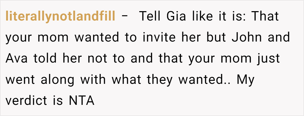 The comments largely support the daughter’s perspective, criticizing the mother’s lack of assertiveness and the brother and sister-in-law’s controlling behavior. Many commenters suggest that the daughter should try to support her sister-in-law directly and encourage her mother to stand up for herself.