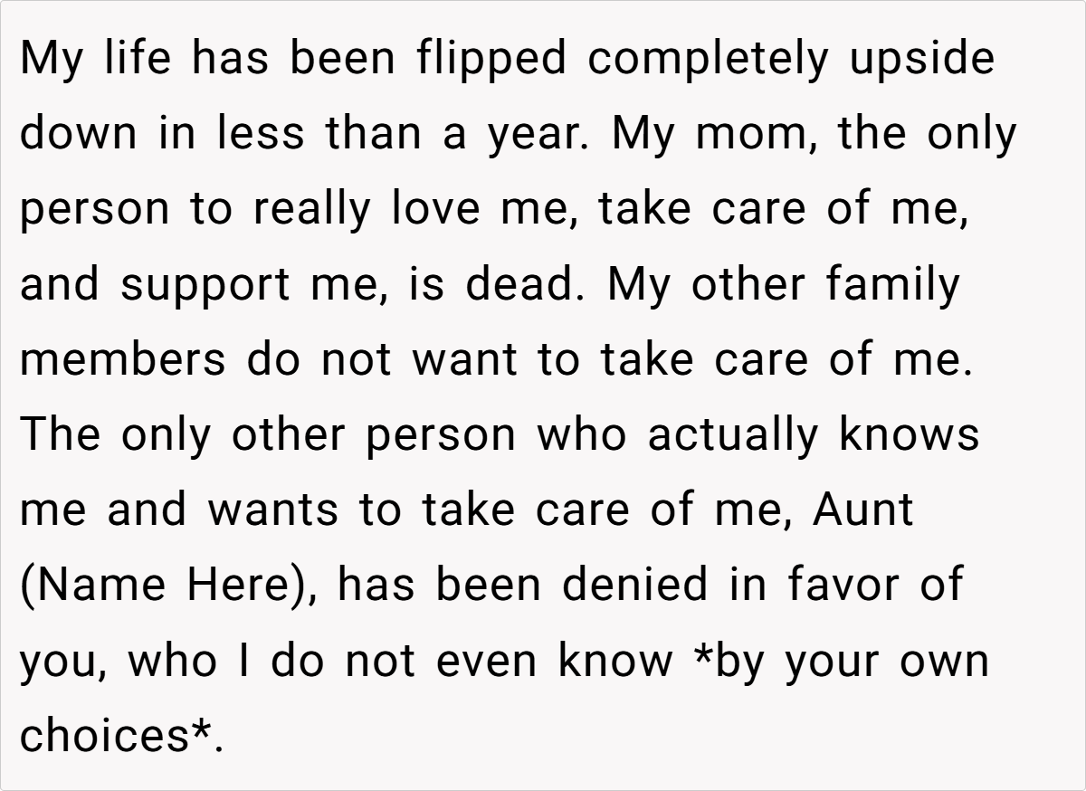 This story is a powerful reminder that personal identity and autonomy are non-negotiable—even for a teenager grappling with immense loss. While the legal system might favor biological connections, emotional well-being should never be sidelined.