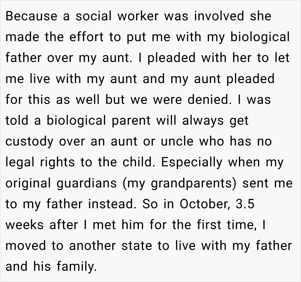 The OP’s experience is a stark reminder that the system sometimes overlooks what is best for the child in favor of rigid legal principles, leaving them to suffer the consequences of a decision made by others.
