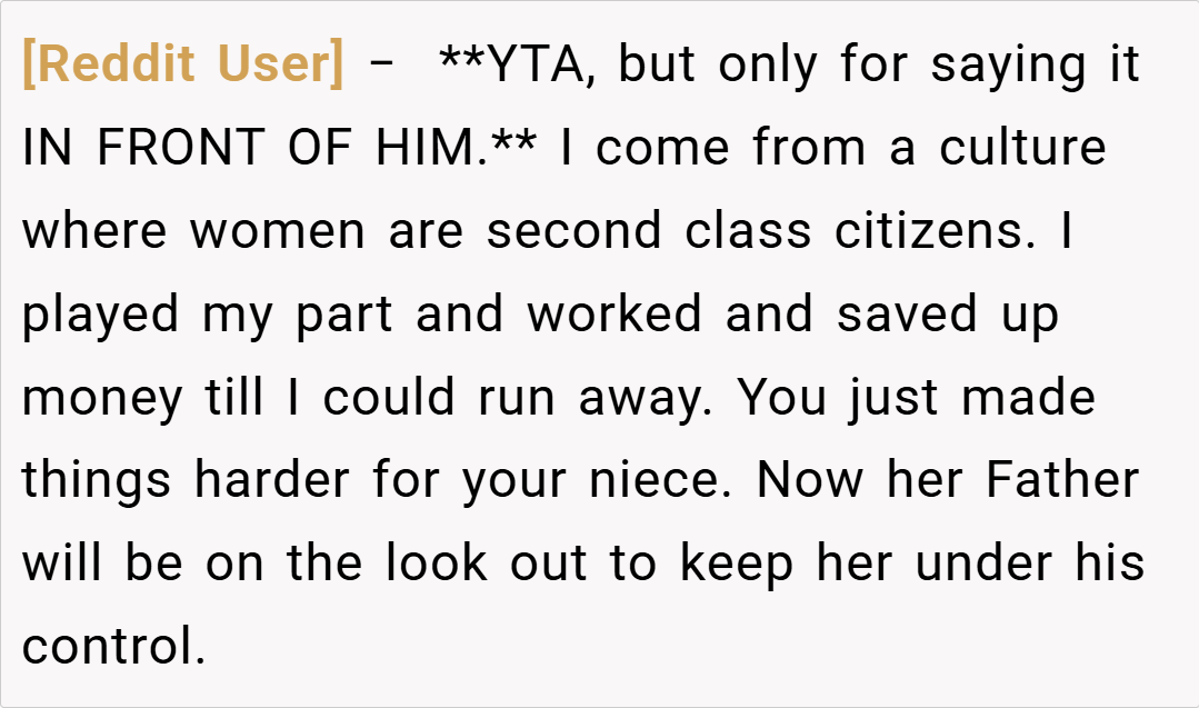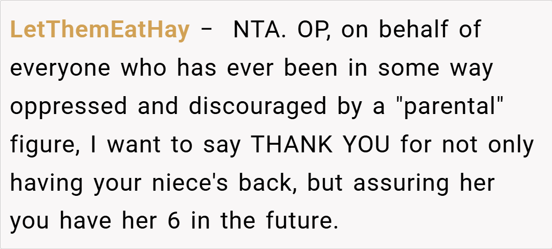 Many commenters praised the uncle for his honest intervention, arguing that the harsh words were warranted given the toxic environment the niece was enduring. Several users emphasized that the advice, while stark, resonated with those who have experienced similar familial oppression and viewed it as a call for the niece to reclaim her independence.