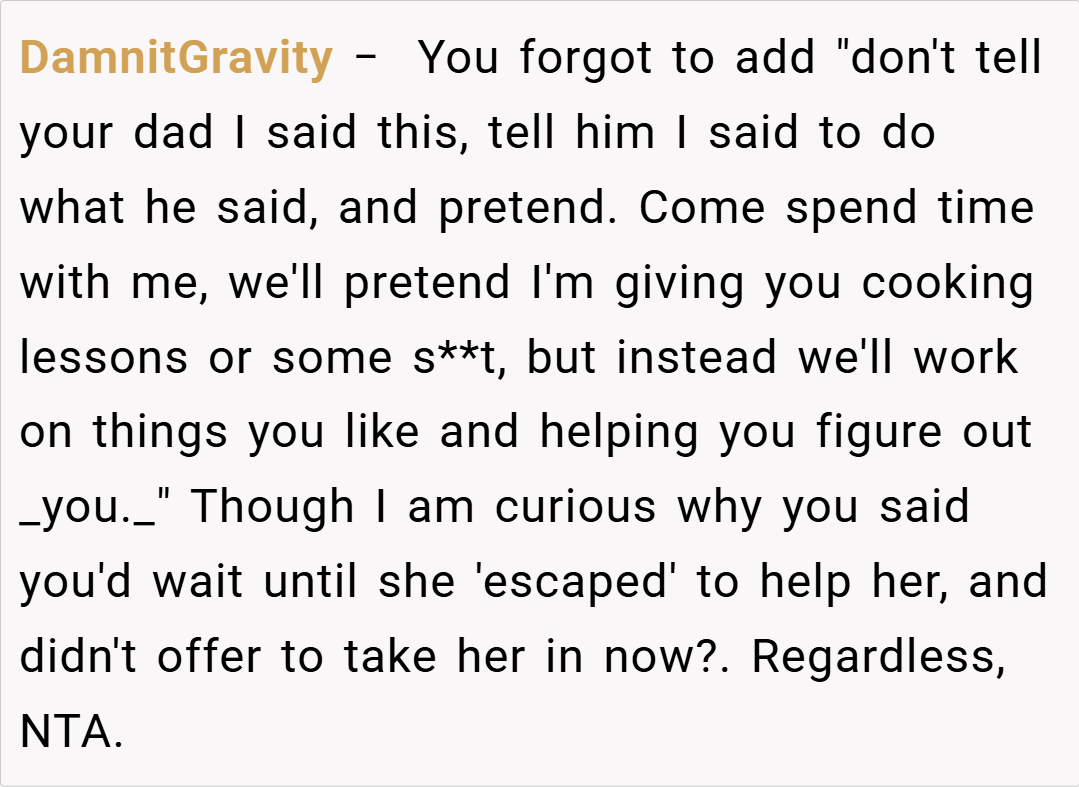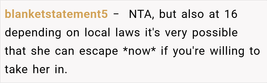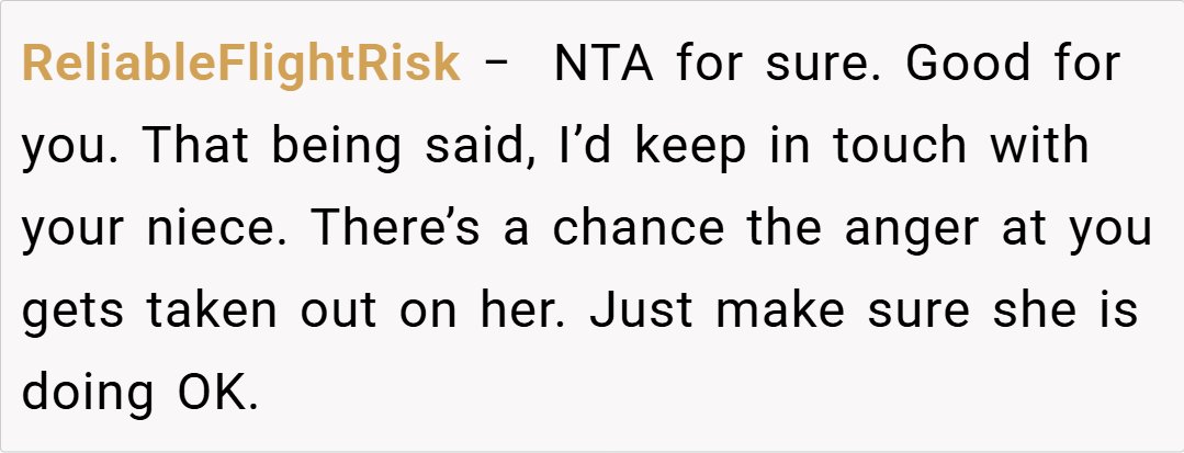 Navigating the murky waters of family loyalty and personal autonomy is never easy, especially when a young life is at stake. The uncle’s blunt advice reflects a deep-seated frustration with a family dynamic that has long been dysfunctional. It’s a situation where setting boundaries isn’t just about discipline—it’s about survival and self-respect. The choice to encourage the niece to escape a toxic environment, even with harsh words,