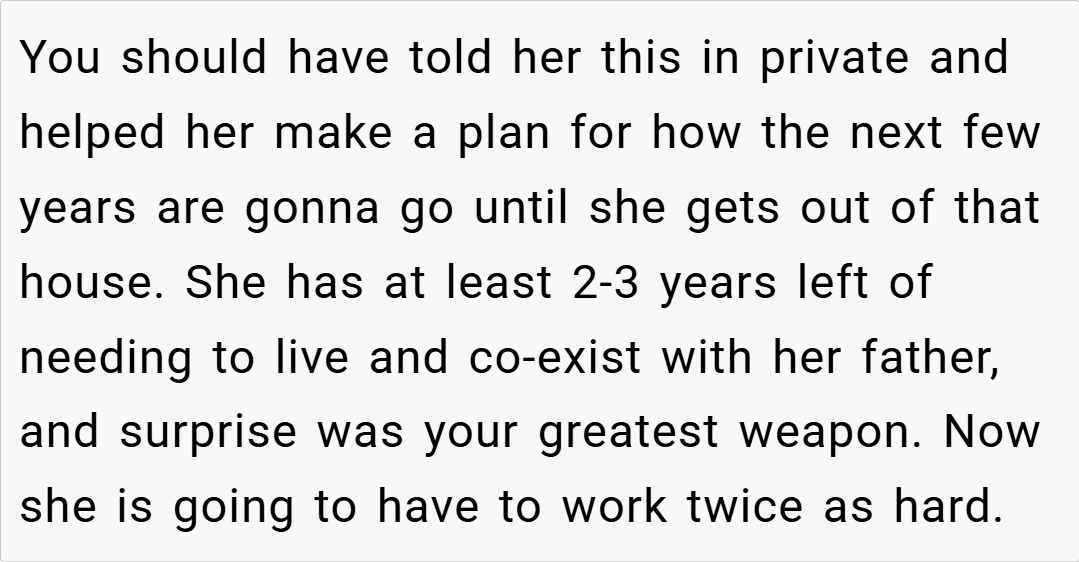 This insight reminds us that sometimes tough love is necessary, especially when it serves as a wake-up call for those caught in a cycle of abuse or neglect. The uncle’s words, though abrasive, were intended to empower the niece to seek a healthier, more supportive environment, highlighting the painful balance between compassion and truth-telling.