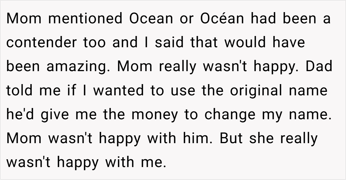 This divergence is not uncommon and can be a source of both tension and growth within family dynamics. The mother’s strong reaction might be rooted in her vision of a name that she believed perfectly encapsulated her hopes for her daughter, while the daughter’s candid response indicates a personal longing for uniqueness and authenticity.