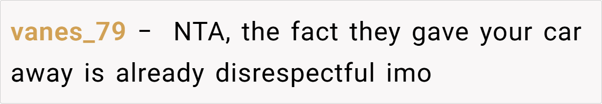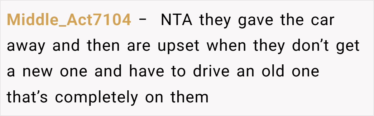 The tension isn’t solely about cars; it’s a reflection of long-standing family dynamics where every decision is loaded with history and expectations. The OP’s calculated maneuver to help, albeit with a contract, ended up spotlighting a painful truth: clear agreements don’t always translate to happy outcomes in the messy realm of family relationships.