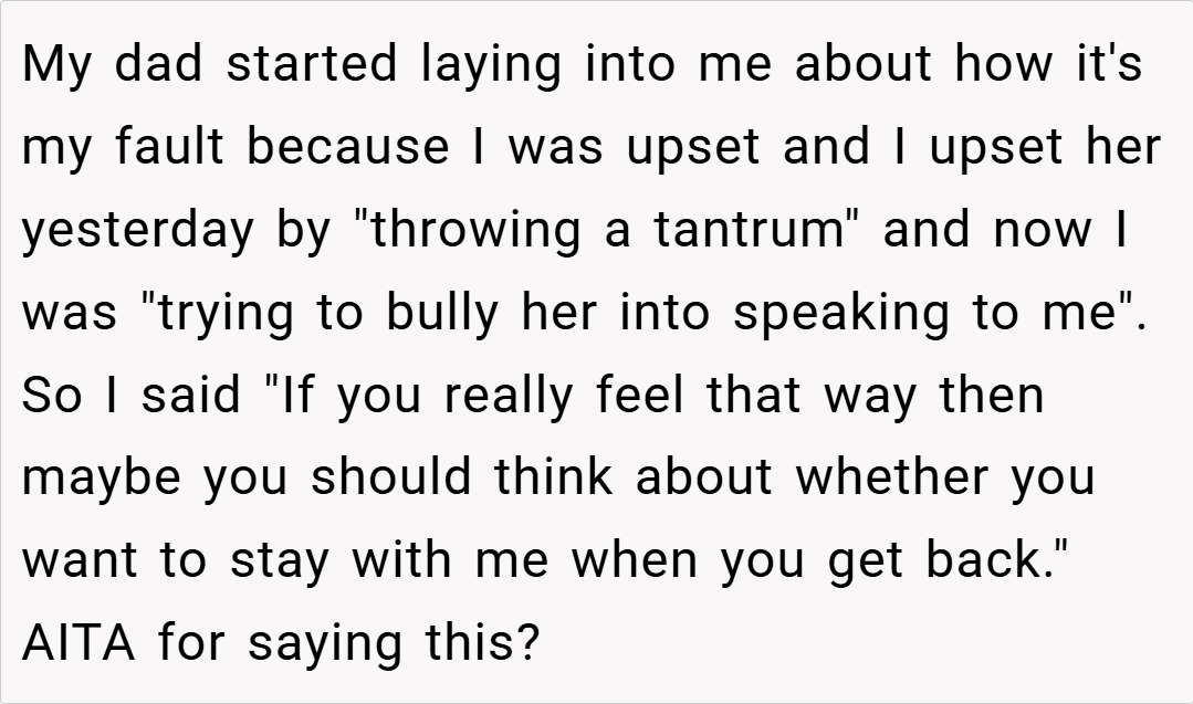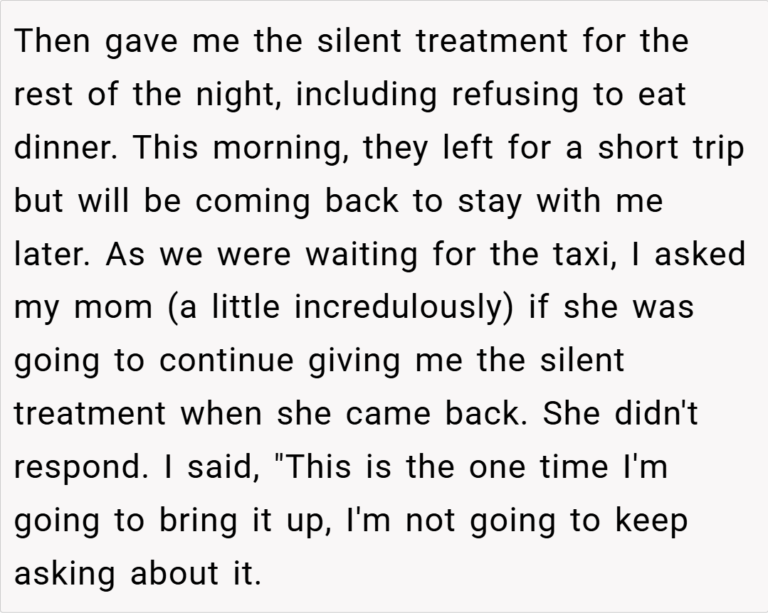 ‘AITA for telling my parents to think about whether they want to stay with me after my mom gave me the silent treatment?’