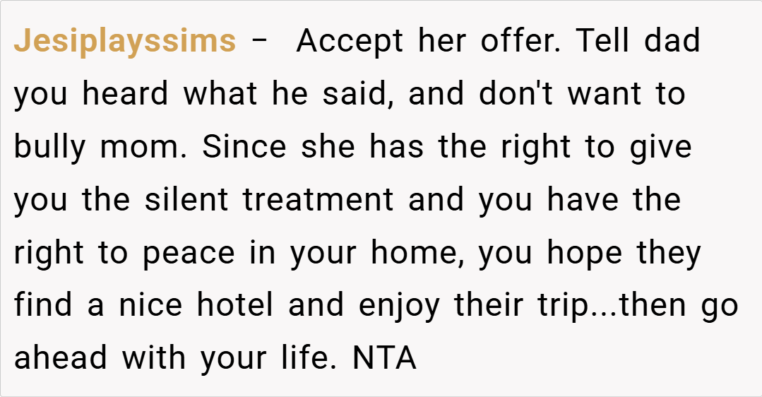At its core, OP’s response was a natural, healthy boundary-setting move. Instead of begging for resolution, she plainly stated that if her mother chose to maintain this cold war, it would make no sense for them to continue staying together. Was it blunt? Sure. But was it fair? Absolutely.