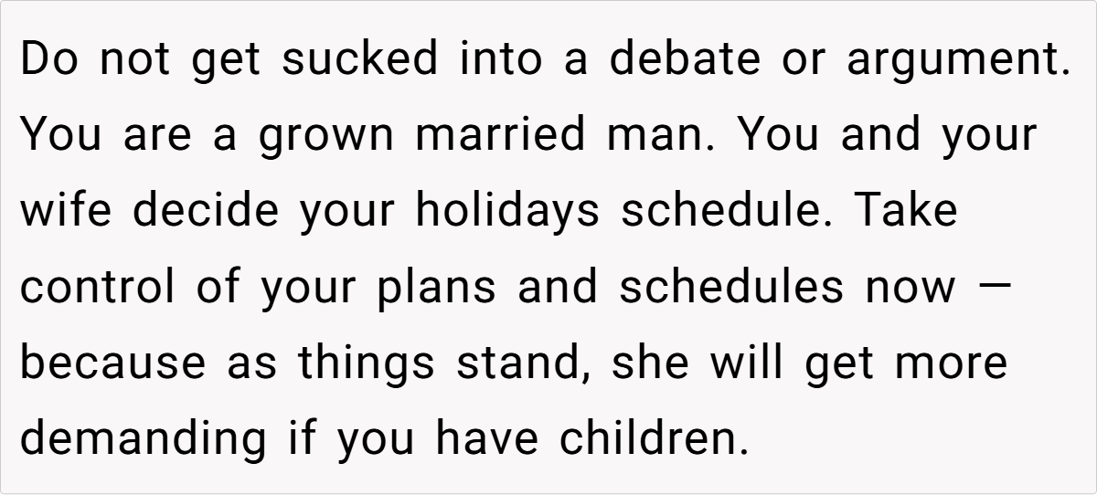 In this situation, the couple’s decision to reserve Christmas Eve and Day exclusively for themselves is a measured attempt to protect their relationship from further harm. While it may sting the feelings of those who expect unconditional participation in family events, experts argue that this boundary-setting is a healthy response to chronic family tension. The mother’s unilateral action in booking accommodations without discussing it is seen as an overreach that forces her expectations on others, rather than fostering a cooperative family environment.