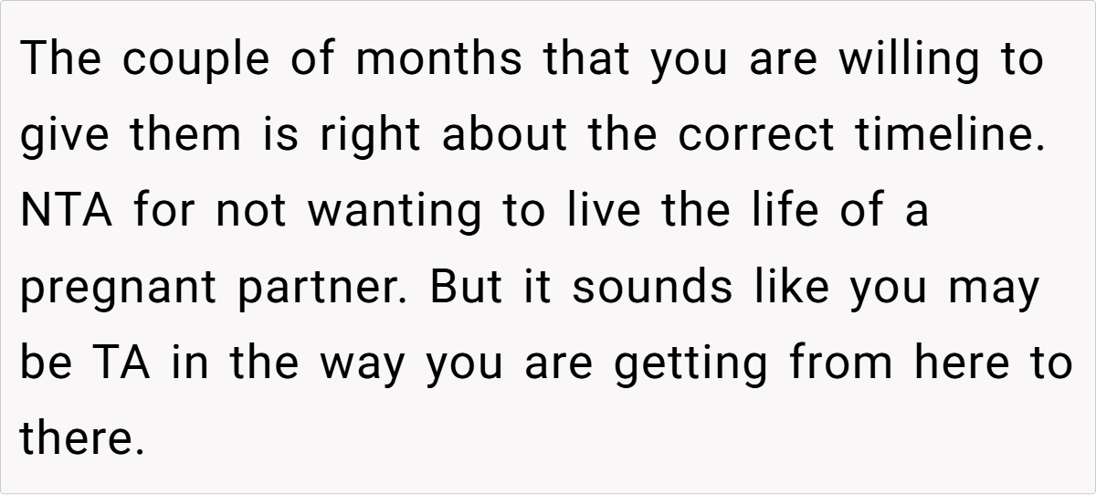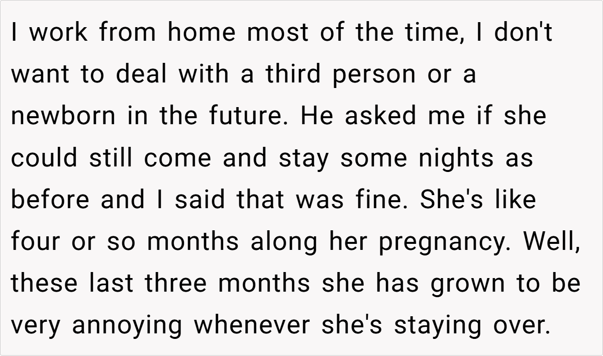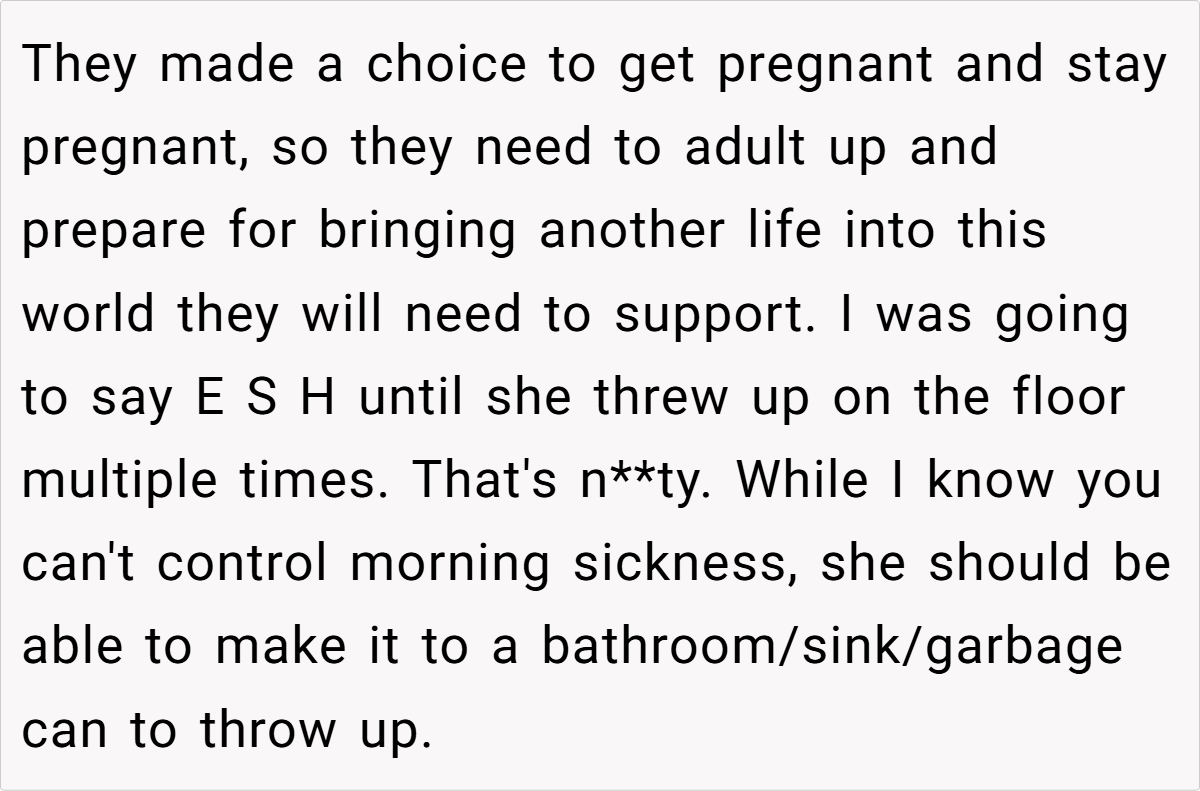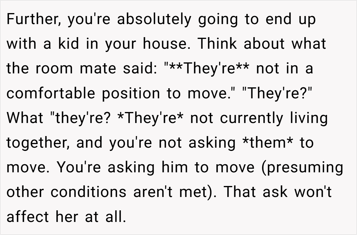 The majority of Reddit commenters are on the side of the original poster, agreeing that the roommate’s actions—asking for his pregnant girlfriend to stop staying over or that he move out—were justified. They note that while pregnancy comes with its challenges, it does not give the girlfriend the right to disrupt someone else’s life in such a significant way.