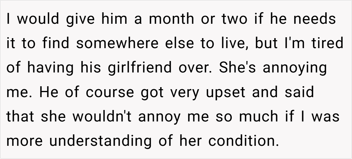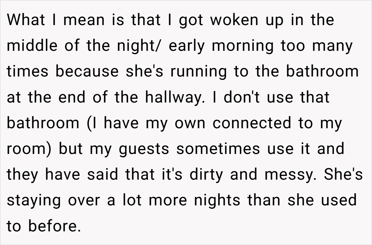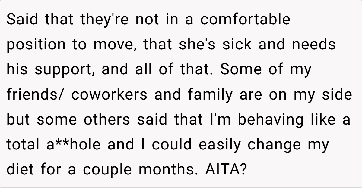 Ultimately, the original poster is not in the wrong for setting boundaries and asking for a change. It’s essential to protect personal space and comfort in a shared living environment. In situations like these, communicating needs clearly and respectfully is key—especially when the demands of one person start to significantly affect another’s well-being.