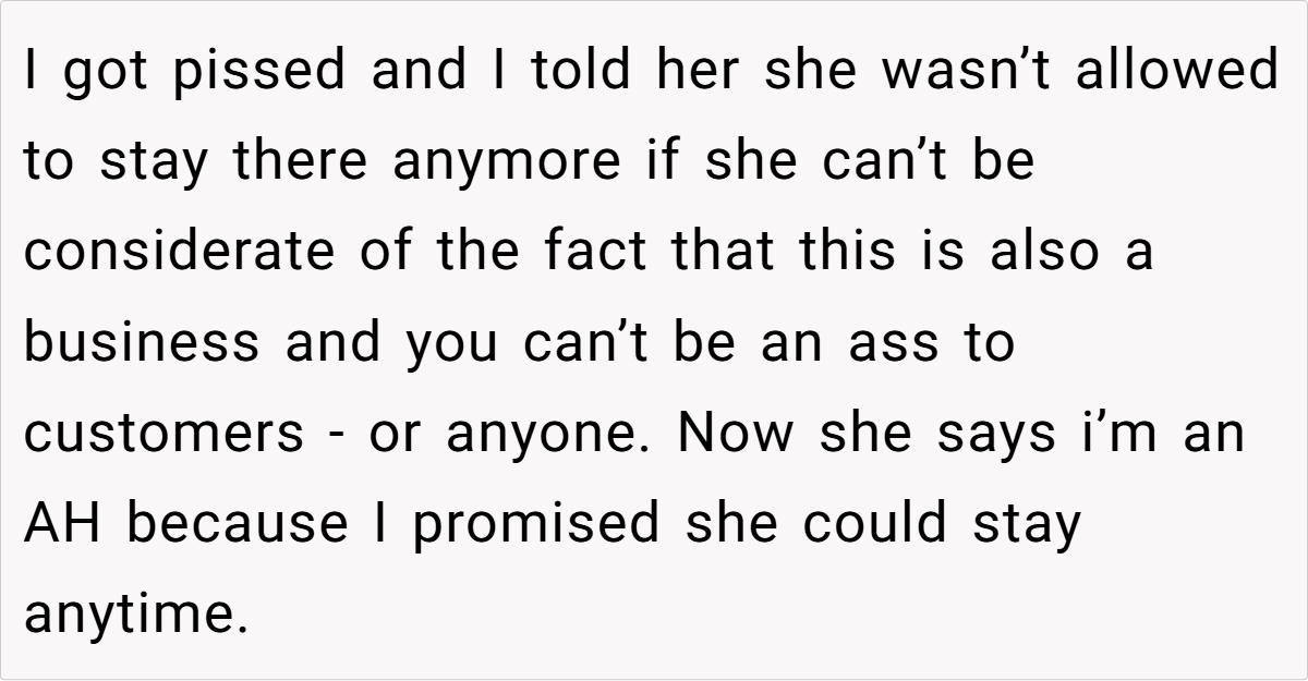 Do you think it’s reasonable for a business owner to enforce stricter rules on family guests when customers’ experiences are compromised? Or should family promises hold firm regardless of the commercial setting? Share your thoughts and experiences below—your perspective might help others navigate the tricky intersection of family and business.