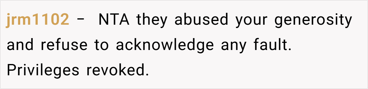 Ultimately, the host’s decision reflects the difficult balance between honoring family contributions and upholding business standards. While it may feel harsh to revoke a long-standing family privilege, protecting the integrity of a revenue-generating property is a legitimate business concern.