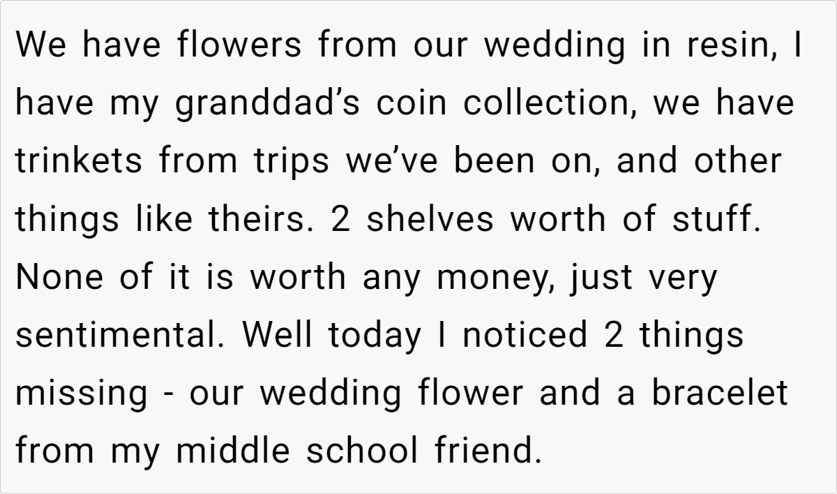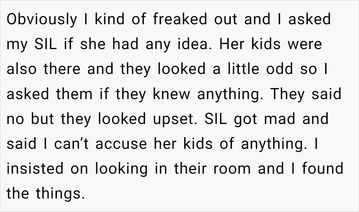 Family get-togethers can sometimes expose deep-seated differences in values and expectations—especially when it comes to respecting personal boundaries and cherished keepsakes. In this case, the tension erupted when the OP discovered that her sister-in-law’s children had taken sentimental items from her home.