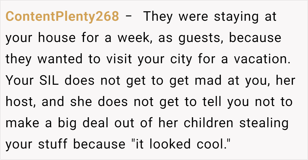 When personal boundaries are breached, especially in one’s own home, the emotional response can be intense. In this instance, the OP’s reaction was fueled not only by the theft of sentimental items but also by long-standing frustrations with her sister-in-law’s parenting style.