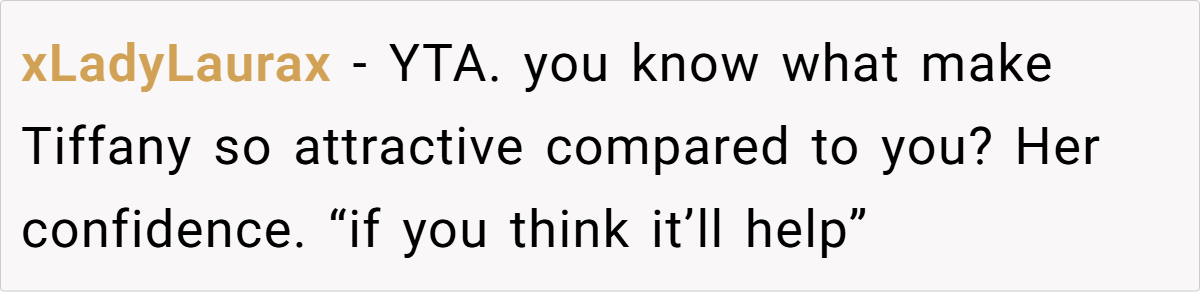 - OP’s real issue wasn’t Tiffany—it was how she felt about herself next to Tiffany.