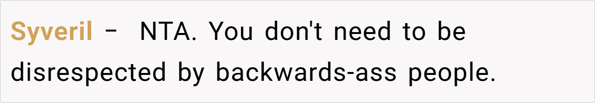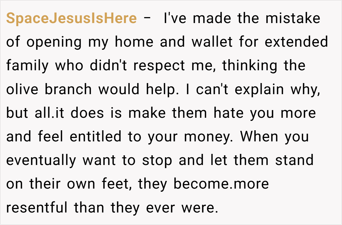 Frustration mixed with a sense of liberation defines OP’s stance. She is tired of being manipulated and burdened by family expectations that come with no mutual respect. Her decision isn’t made lightly—it’s a culmination of years of accumulated grievances and a clear desire to set healthier boundaries in a family dynamic that has long been skewed.