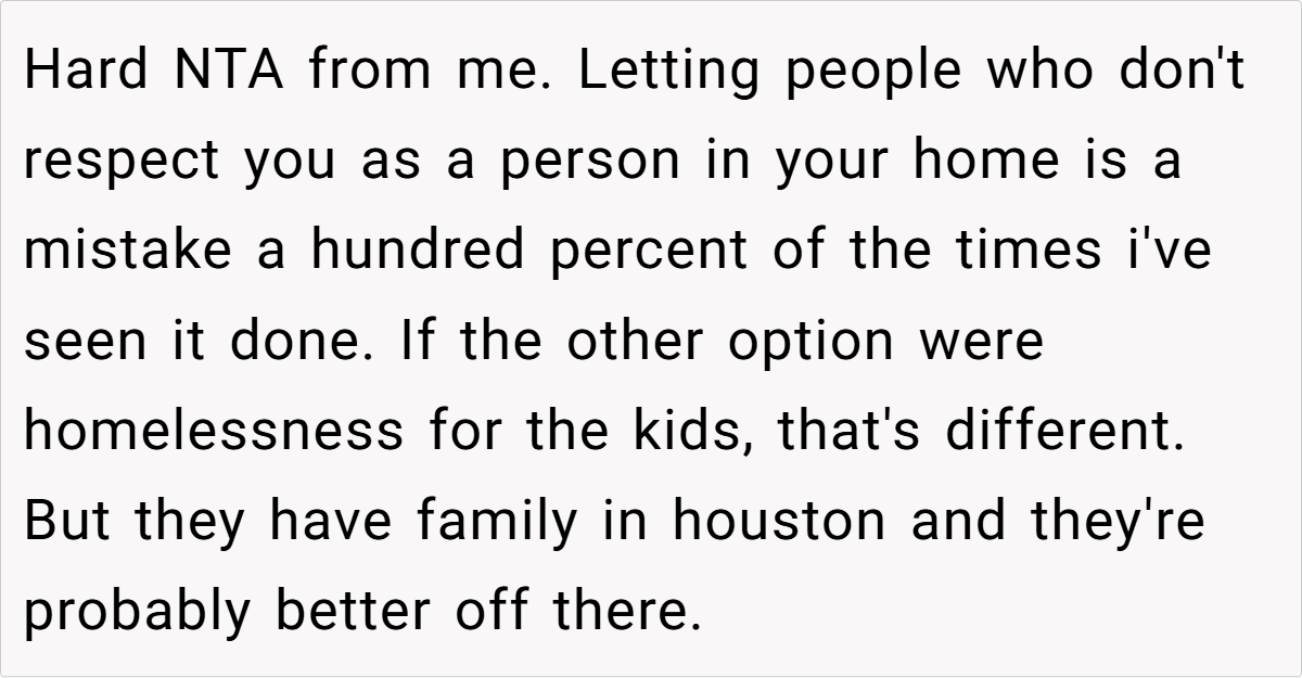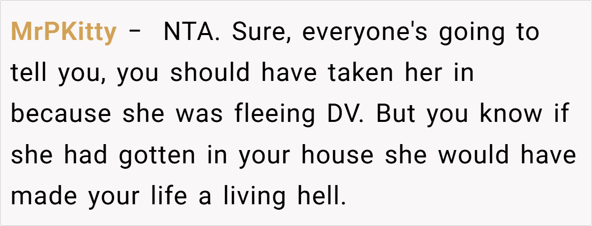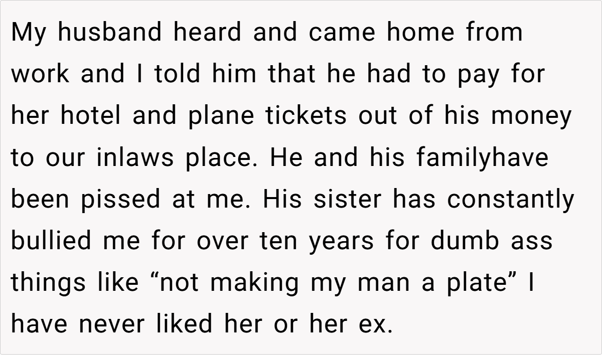 Several voices suggest that her husband should have defended her against such behavior from the start, and that expecting OP to continue accommodating SIL’s demands is unreasonable. The consensus is clear: establishing firm boundaries, even if it risks familial conflict, is essential when dealing with manipulative and disrespectful relatives.