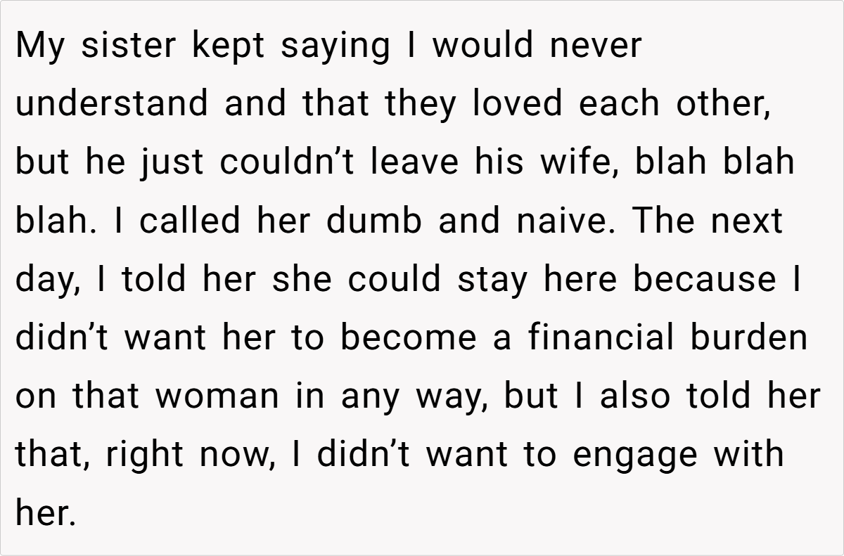 AITA for Telling My Sister I Don’t Know if I Love Her After Finding Out About Her 5-Year Affair?