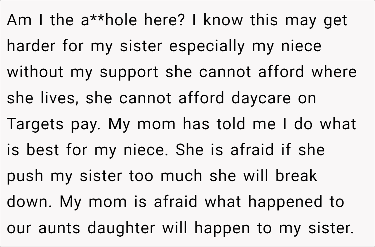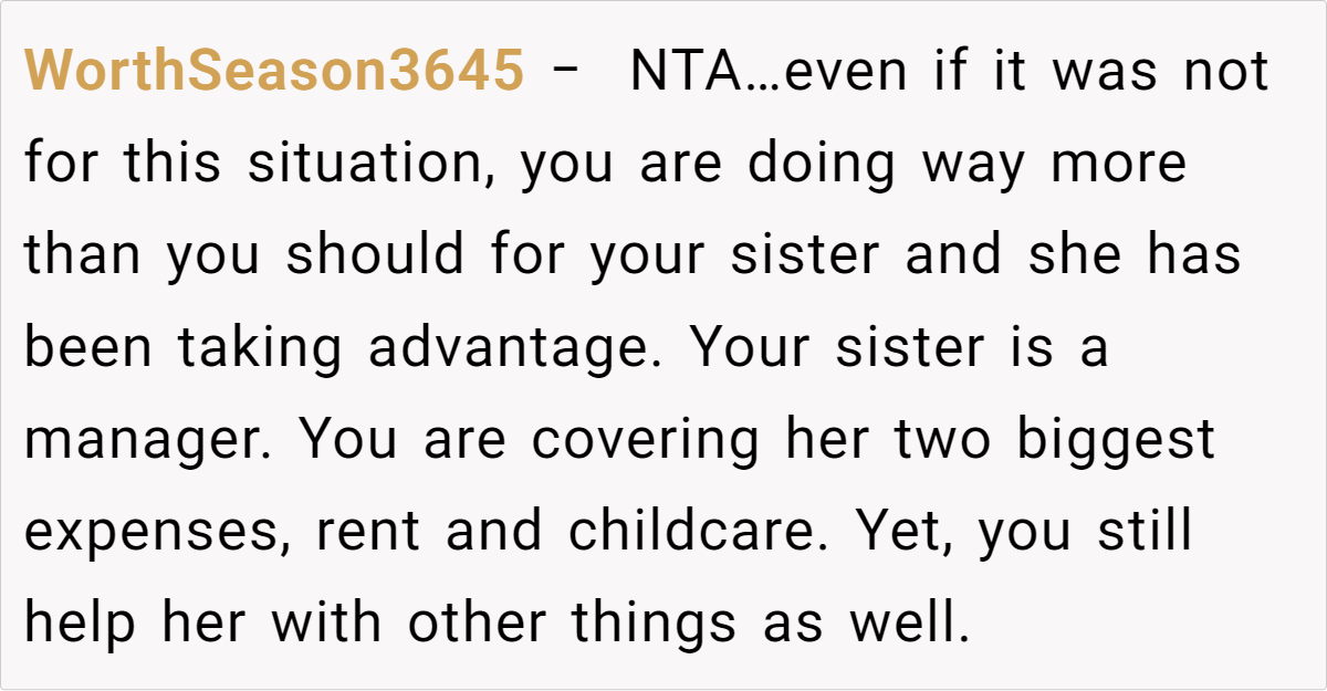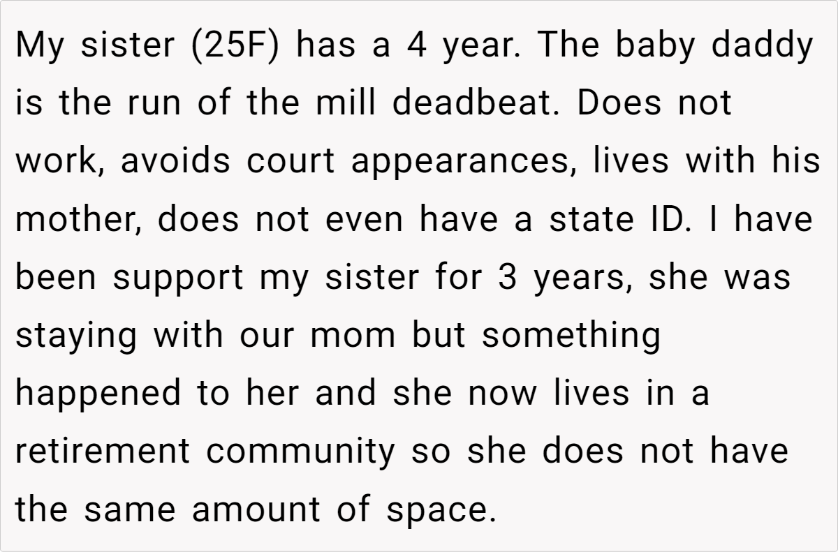The challenges of single parenthood can lead to complicated family dynamics, especially when siblings step in to fill an emotional and financial void. In this scenario, the OP has been supporting his 25-year-old sister and 4-year-old niece for three years—covering rent, childcare, and other essentials—after the child’s father abandoned them. That help seemed crucial for a young mom in need.