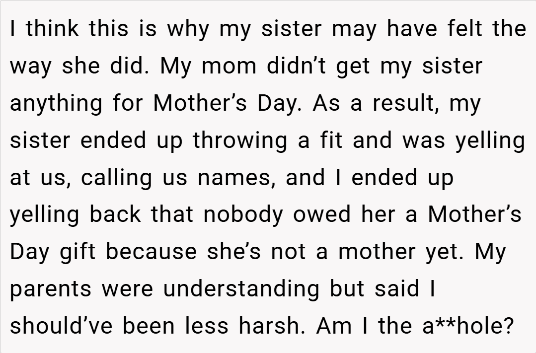 ‘ AITA for telling my sister nobody needs to give her anything for Mother’s Day?’