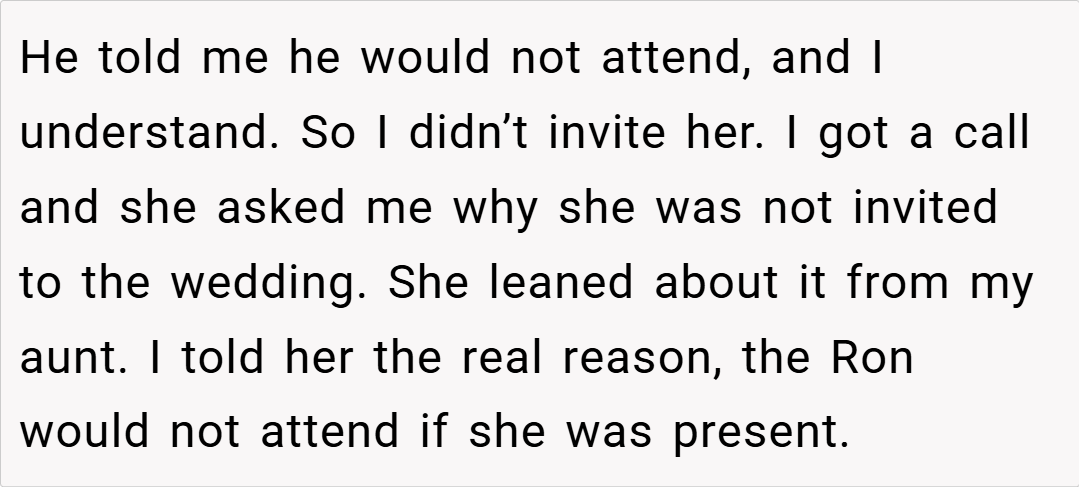 Weddings often mirror the complex tapestry of our lives, and sometimes preserving a joyful day requires difficult choices. While the decision to exclude Ginny is controversial, it underscores the importance of setting boundaries for emotional safety. What do you think—was this a justified move, or could there have been a better way to handle a fractured family dynamic? Share your thoughts and join the conversation.